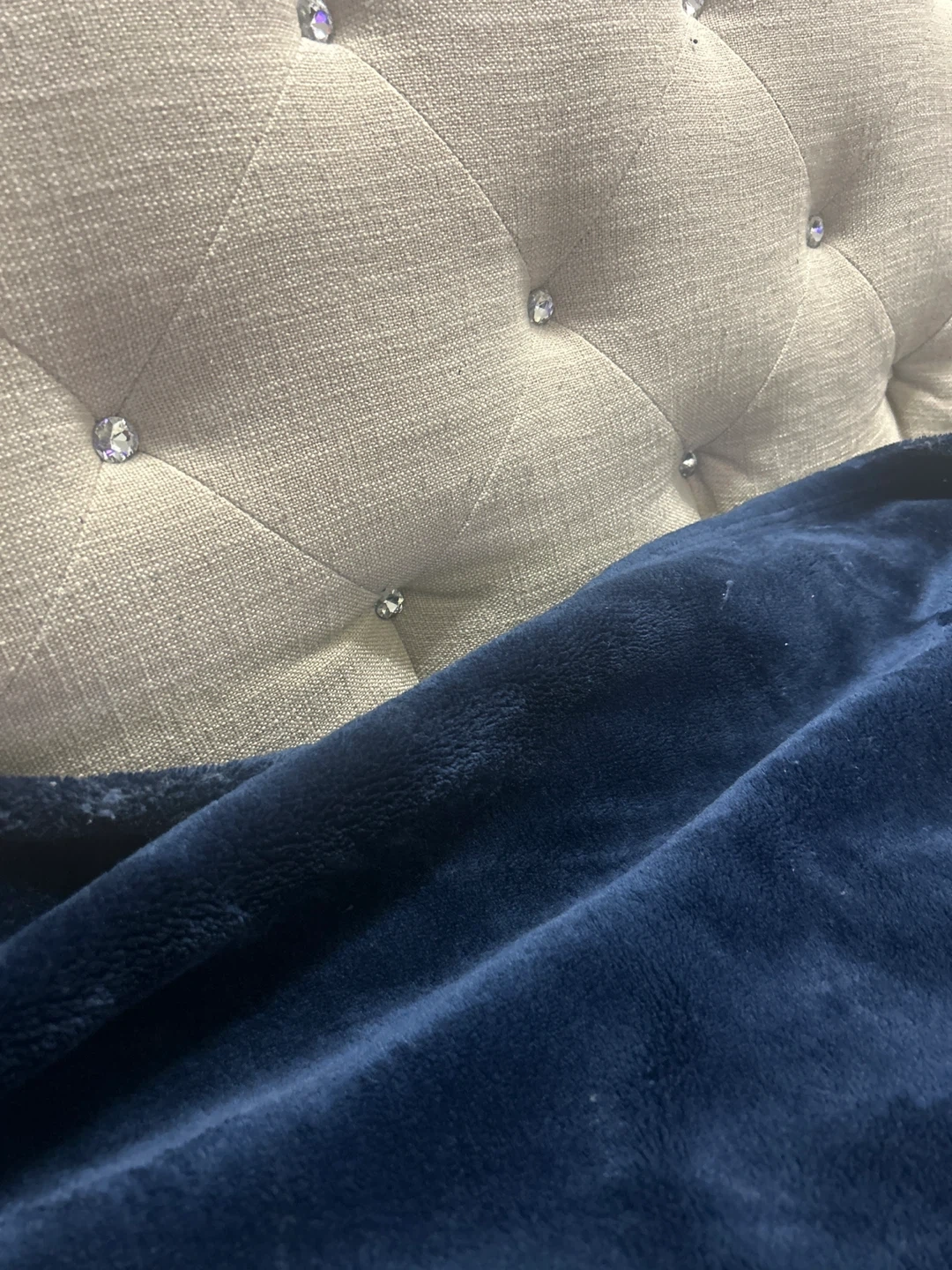 Tufted Beige Sofa with Crystal Accents