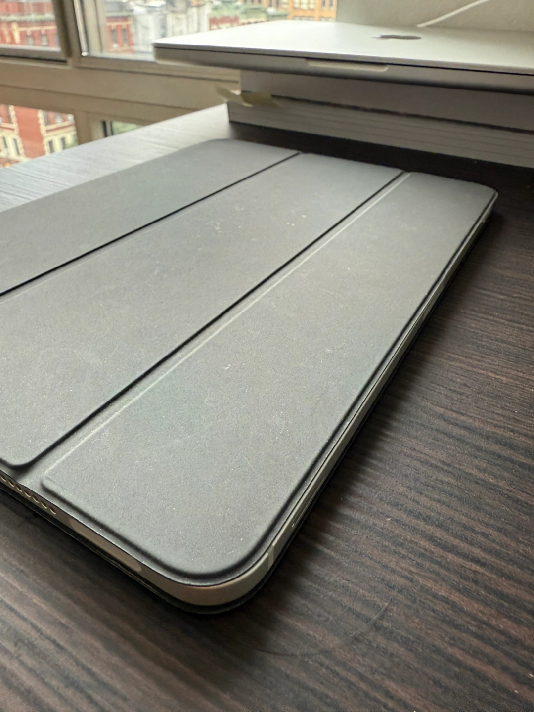 Comes with apple folio case and usb-c cable and charging block.