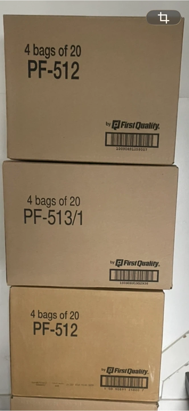 This listing is for a case containing 4 bags of 20 items each, for a total of 80 items. The case includes boxes marked PF-512 and PF-513/1. Brand is First Quality. Each bag contains 20 units.