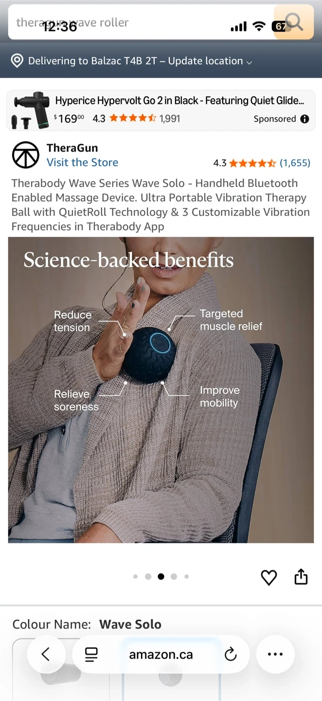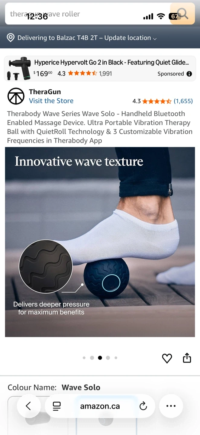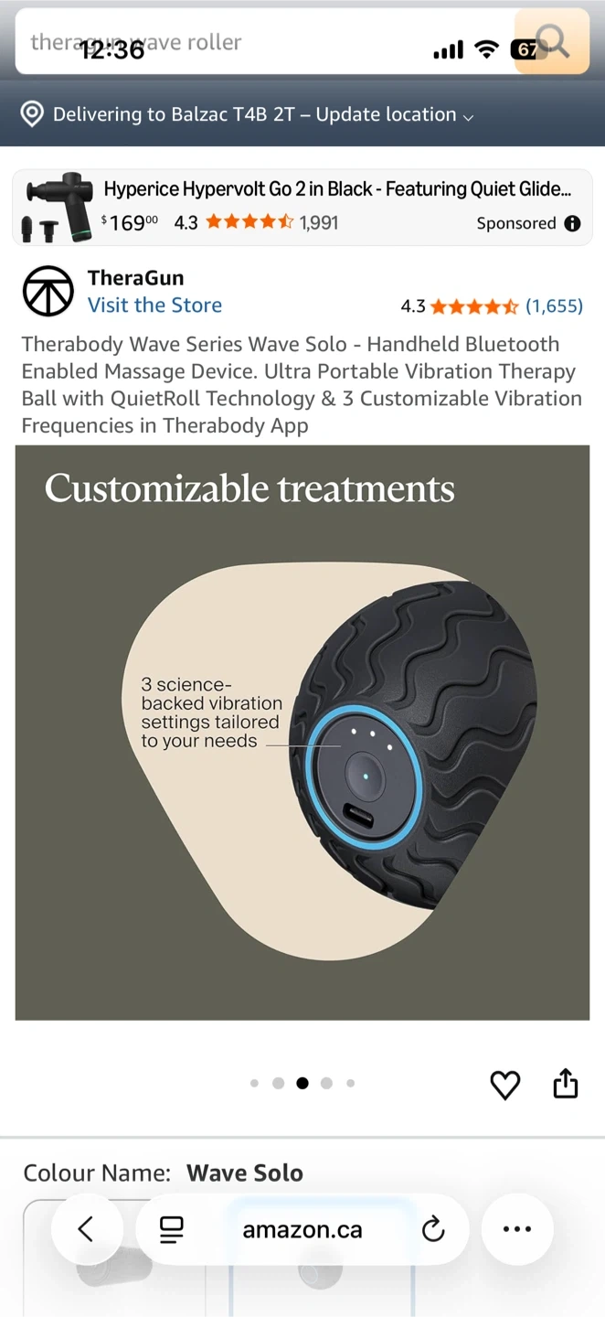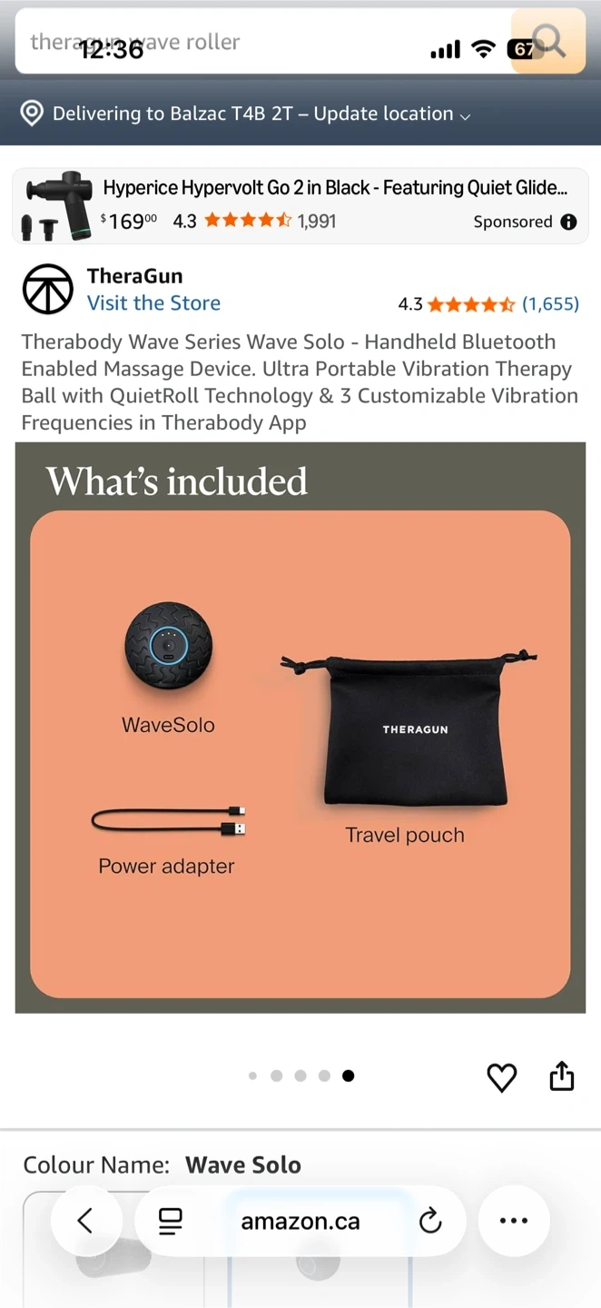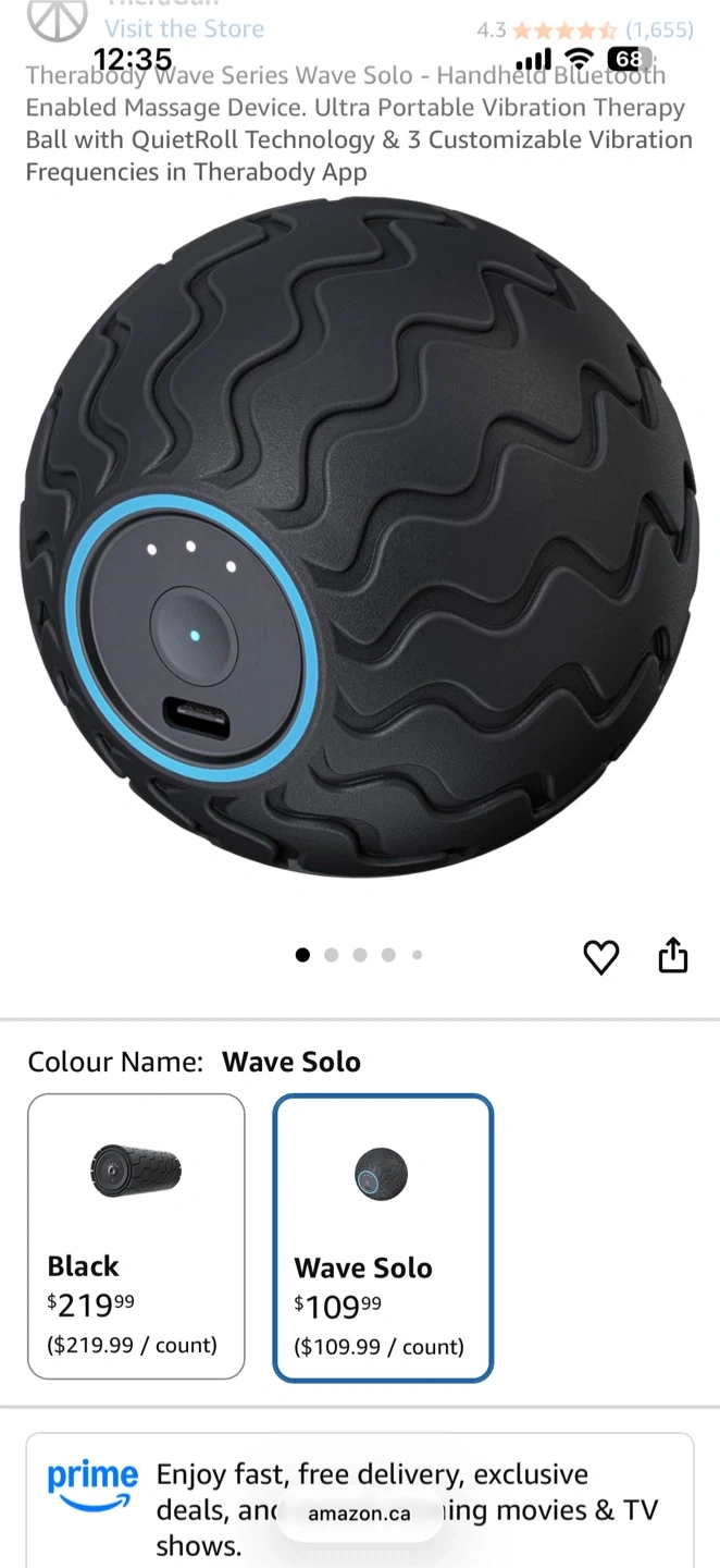 Brand New TheraGun Wave Series Wave Solo handheld massage device. It's a portable Bluetooth enabled vibration therapy ball. Features QuietRoll Technology and 3 customizable vibration frequencies. It's useful for targeted muscle relief and enhanced recovery.