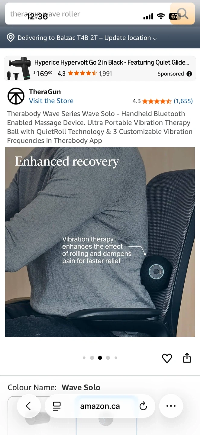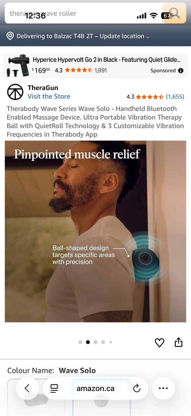 Brand New TheraGun Wave Series Wave Solo handheld massage device. It's a portable Bluetooth enabled vibration therapy ball. Features QuietRoll Technology and 3 customizable vibration frequencies. It's useful for targeted muscle relief and enhanced recovery.