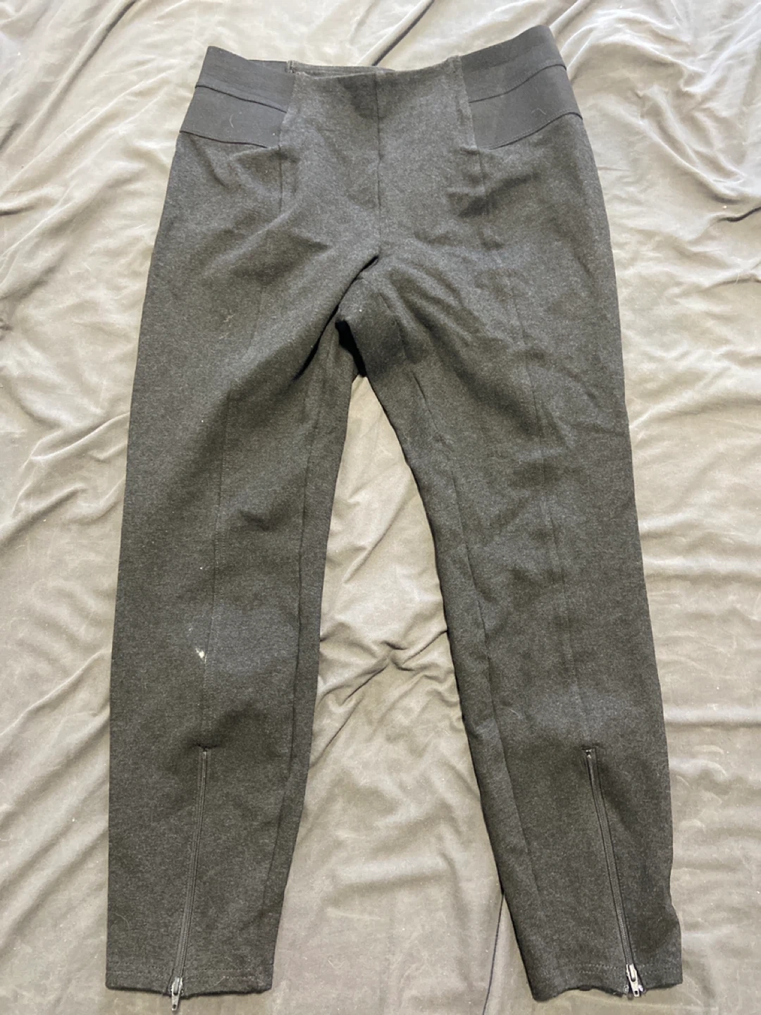 Comfortable stretch pants in a versatile grey colour. Features an elastic waistband for a snug fit and zippered ankles for a stylish touch. These pants are made from a soft, durable fabric that moves with you.