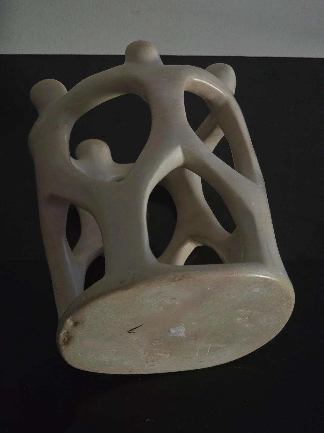 This item is a "Circle of Friends" sculpture, likely hand-carved from Kisii soapstone in Kenya.