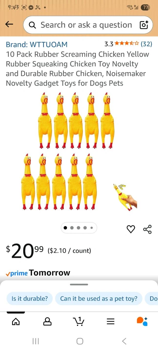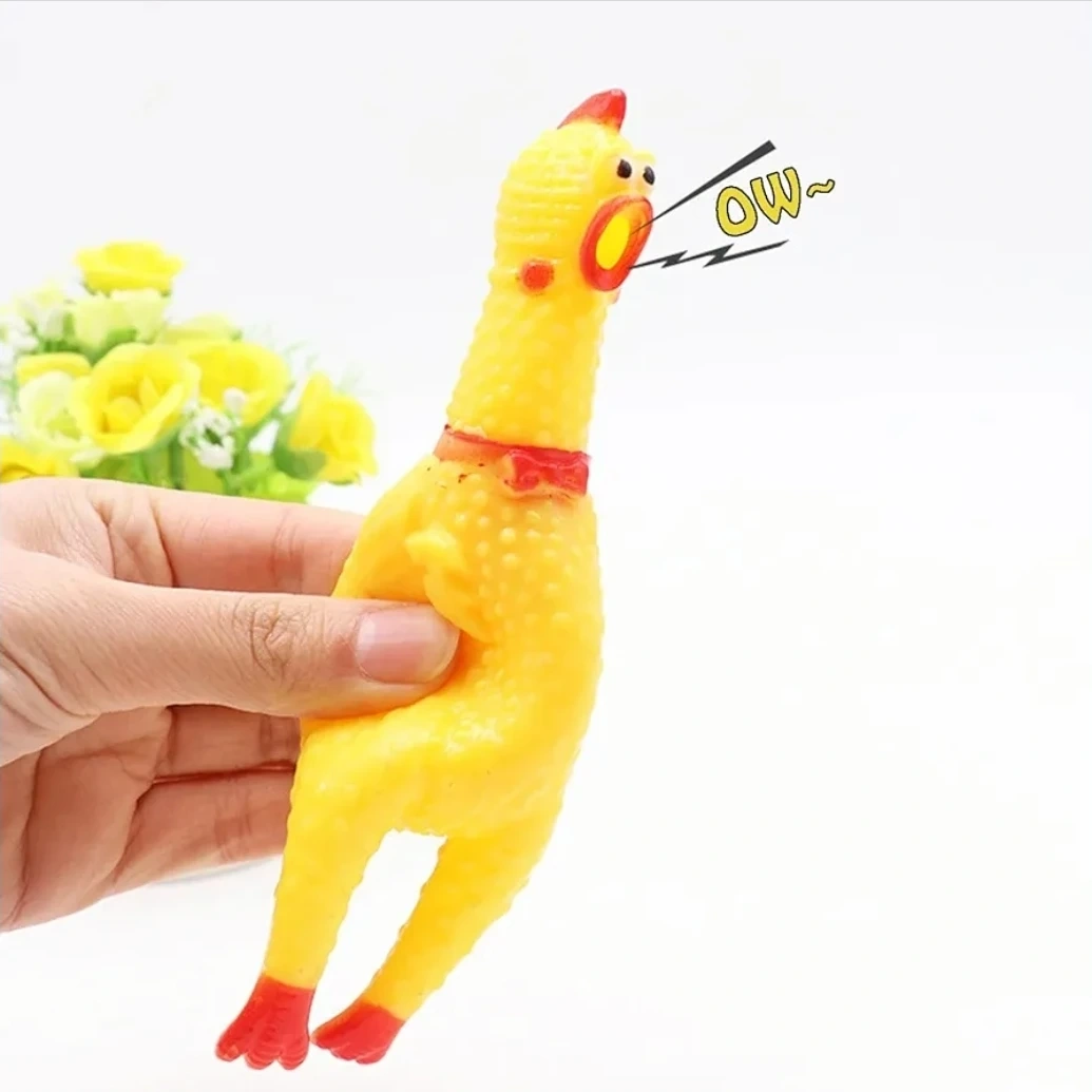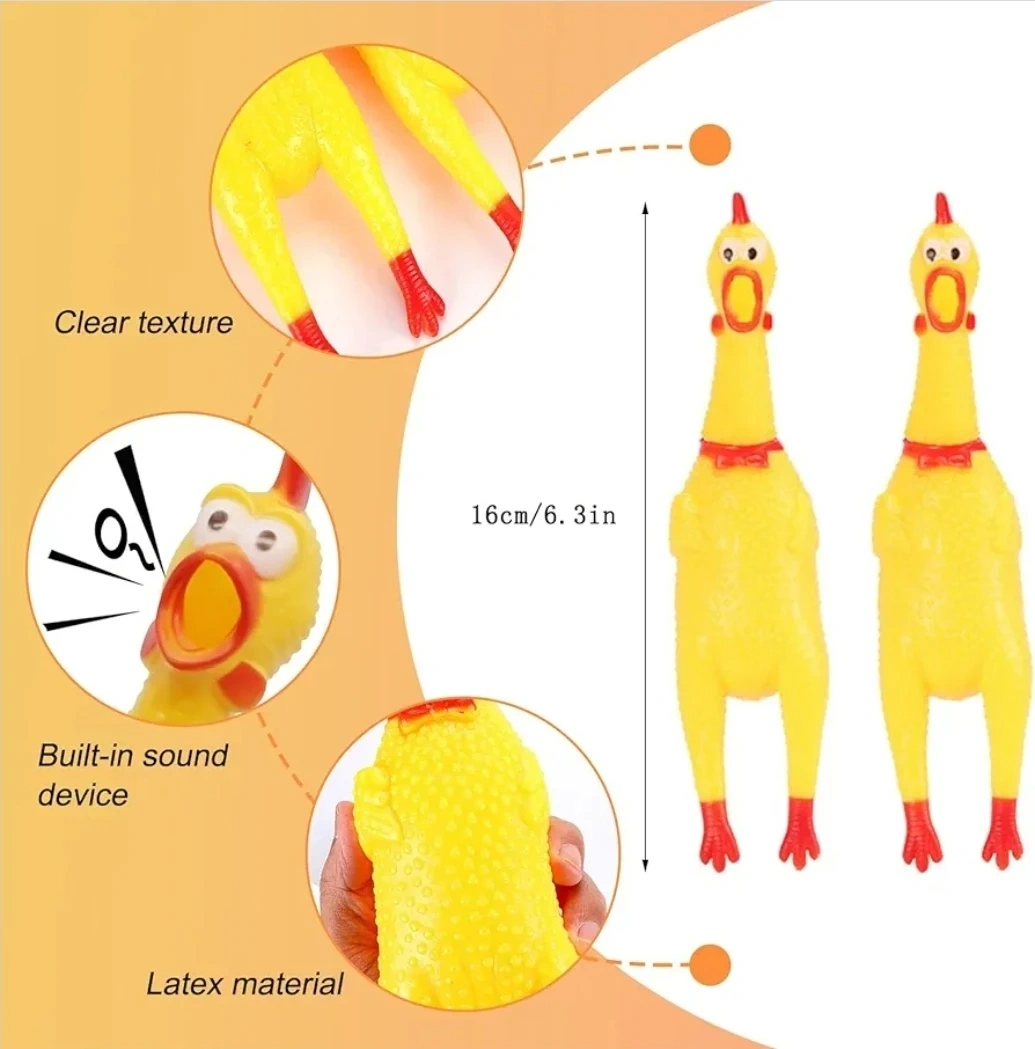 These screaming chicken dog toys are made from high quality rubber. They're 16cm (6.3 inches) long and feature a built-in sound device. Made with clear texture and latex material.