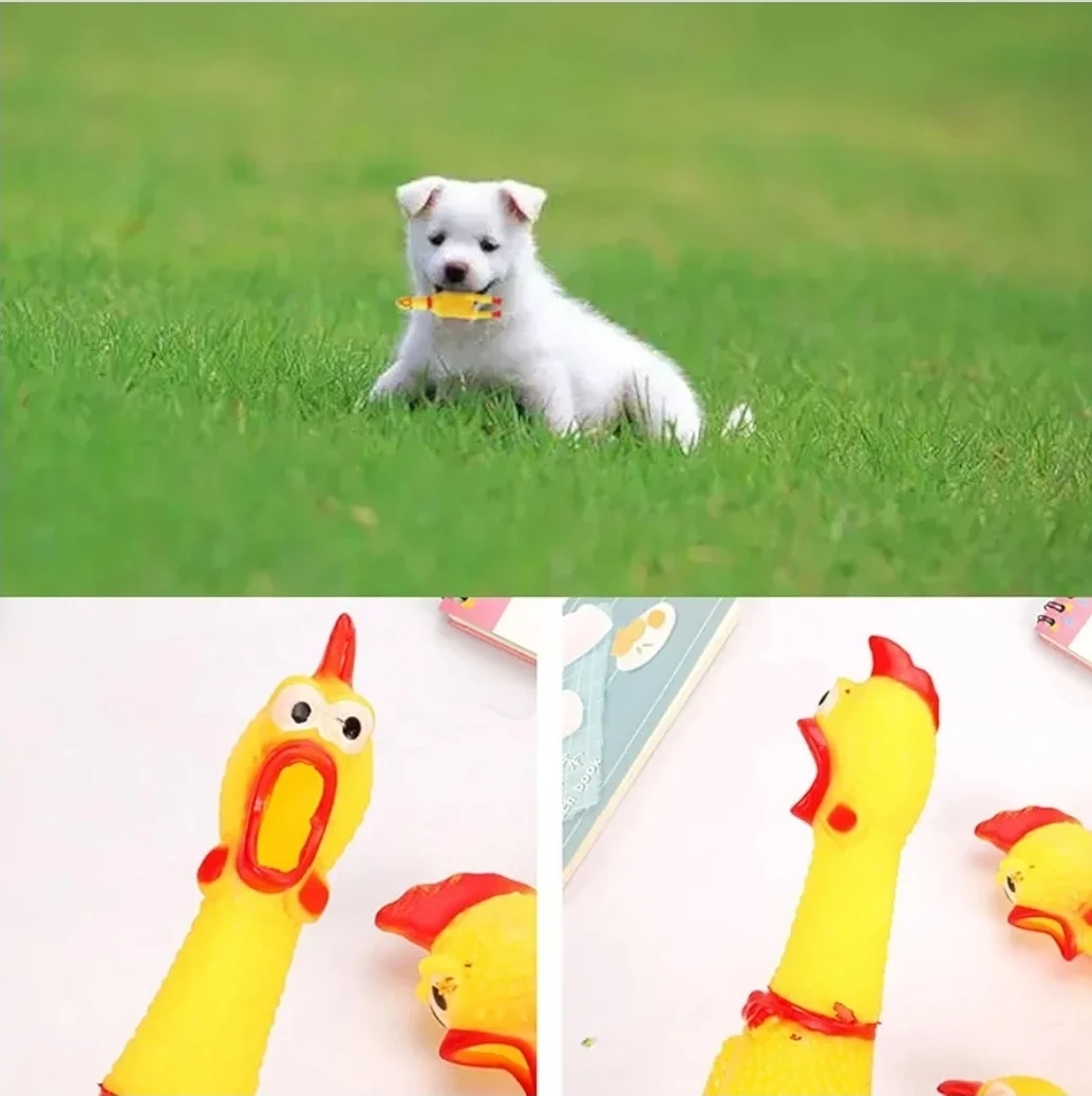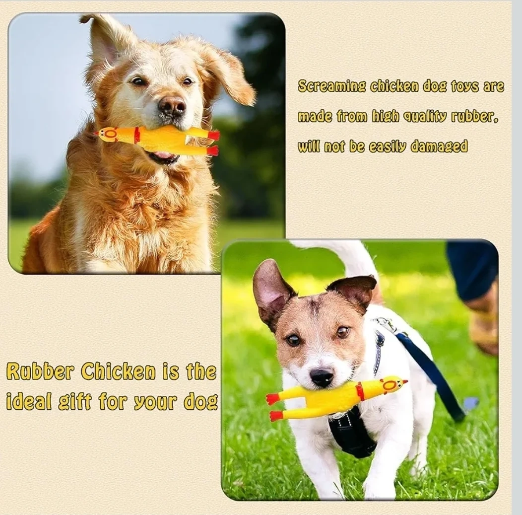 These screaming chicken dog toys are made from high quality rubber. They're 16cm (6.3 inches) long and feature a built-in sound device. Made with clear texture and latex material.