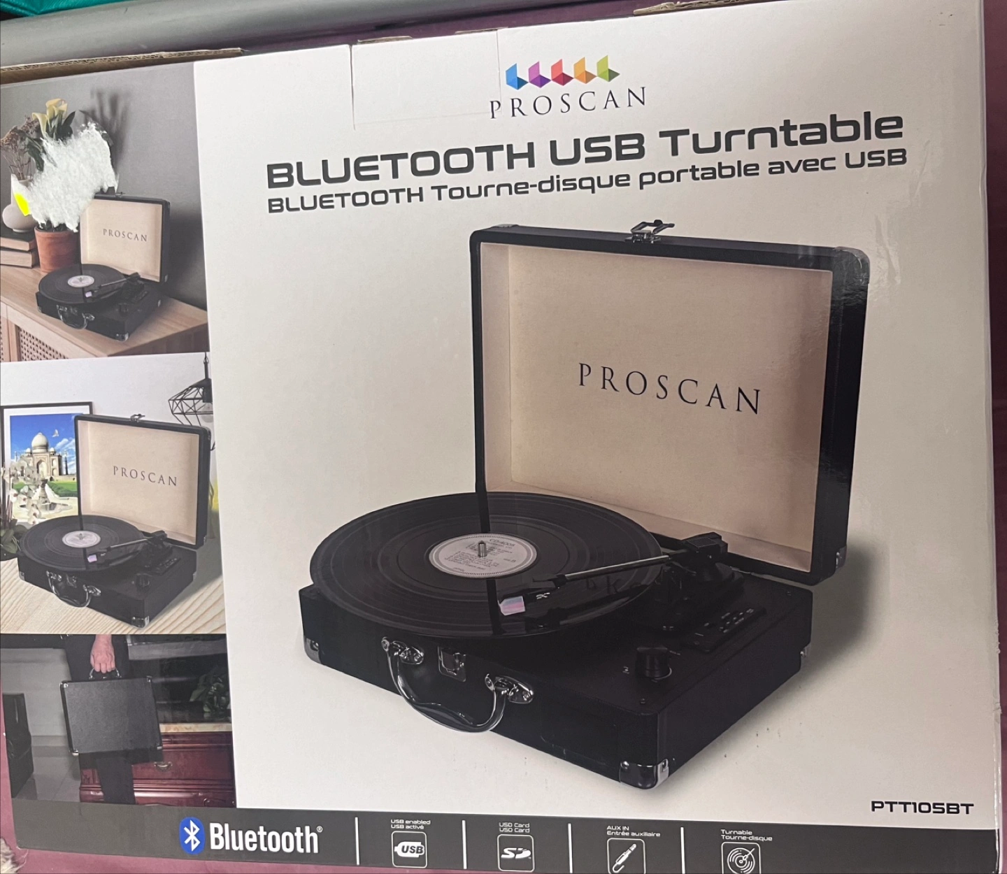 Selling a Proscan Bluetooth USB Turntable in excellent condition! It's practically brand new and comes with its original box.
