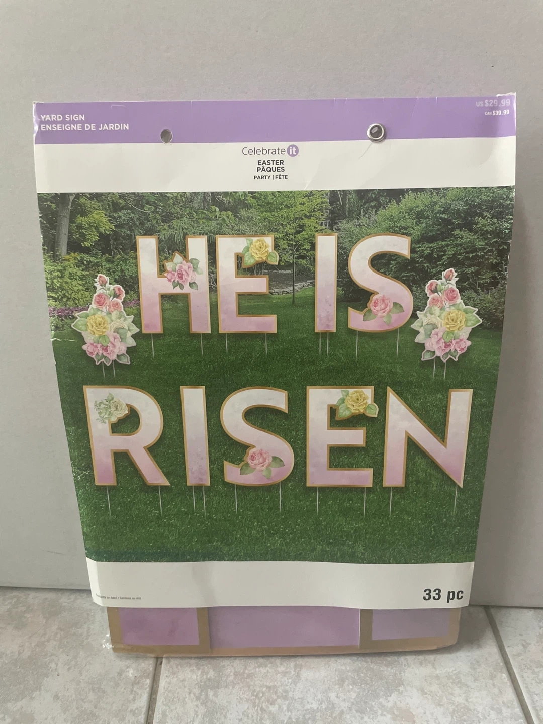 Celebrate Easter with this "HE IS RISEN" yard sign set. It includes 33 pieces to create a festive display. Perfect for decorating your lawn during the spring holiday!