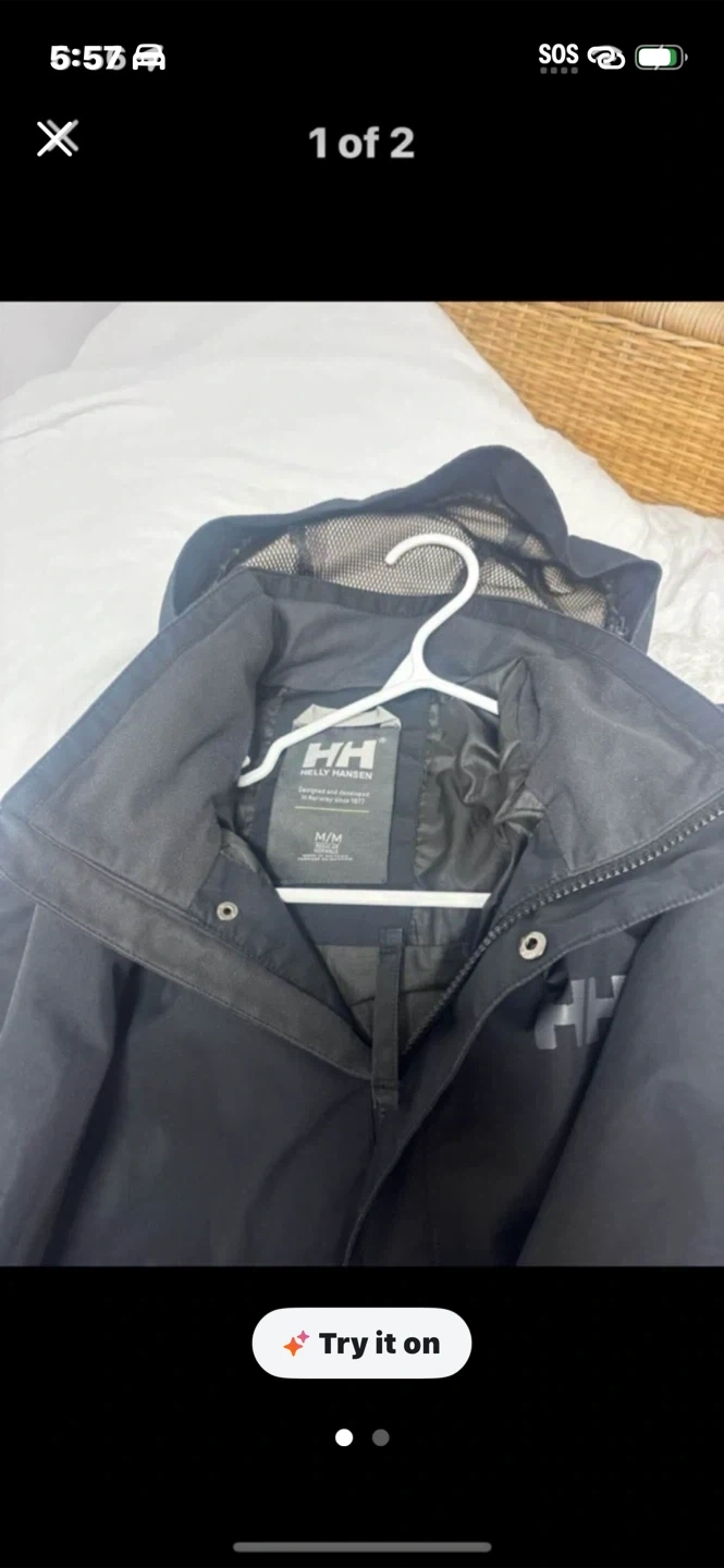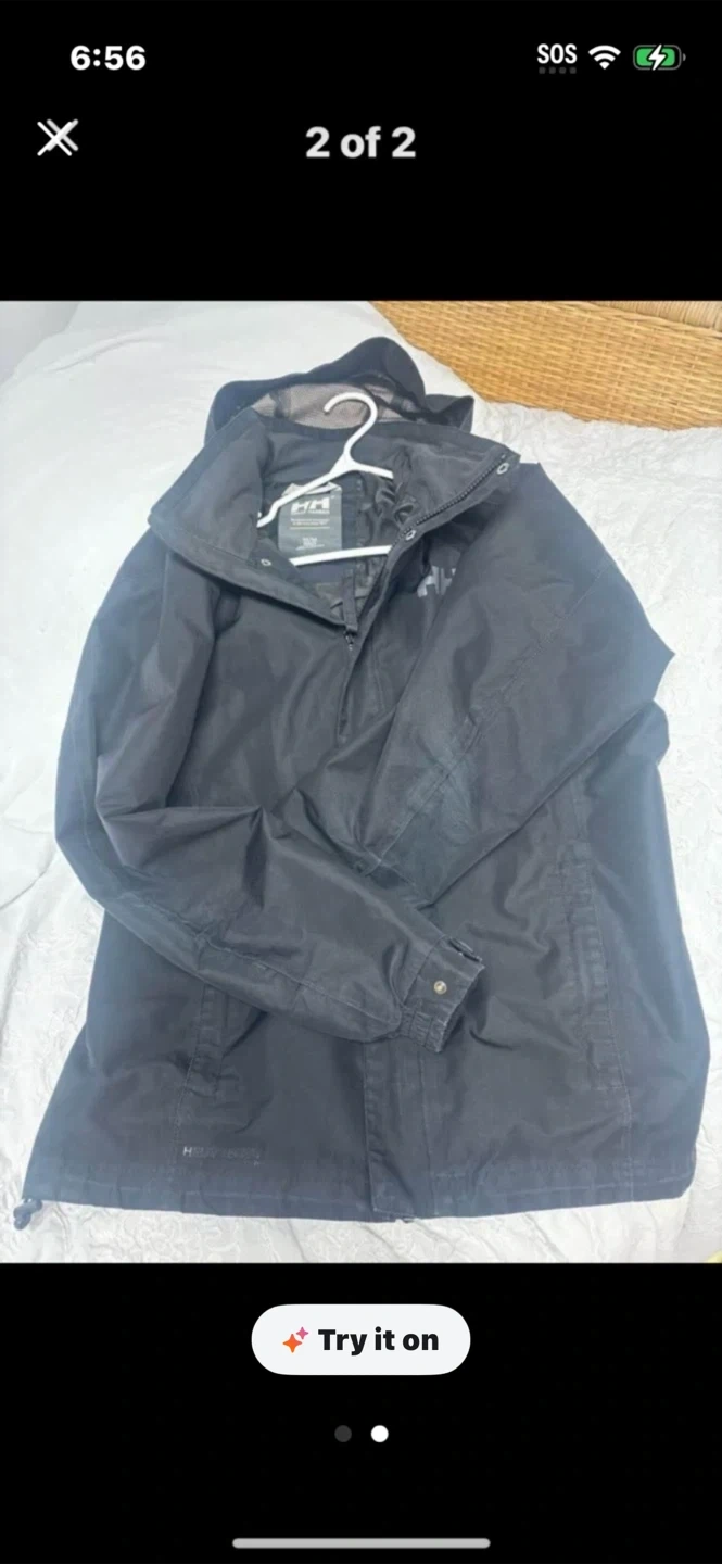 Helly Hansen black jacket in size M/M. It's a waterproof jacket designed for outdoor activities. Great for unpredictable weather! Pick up cash only