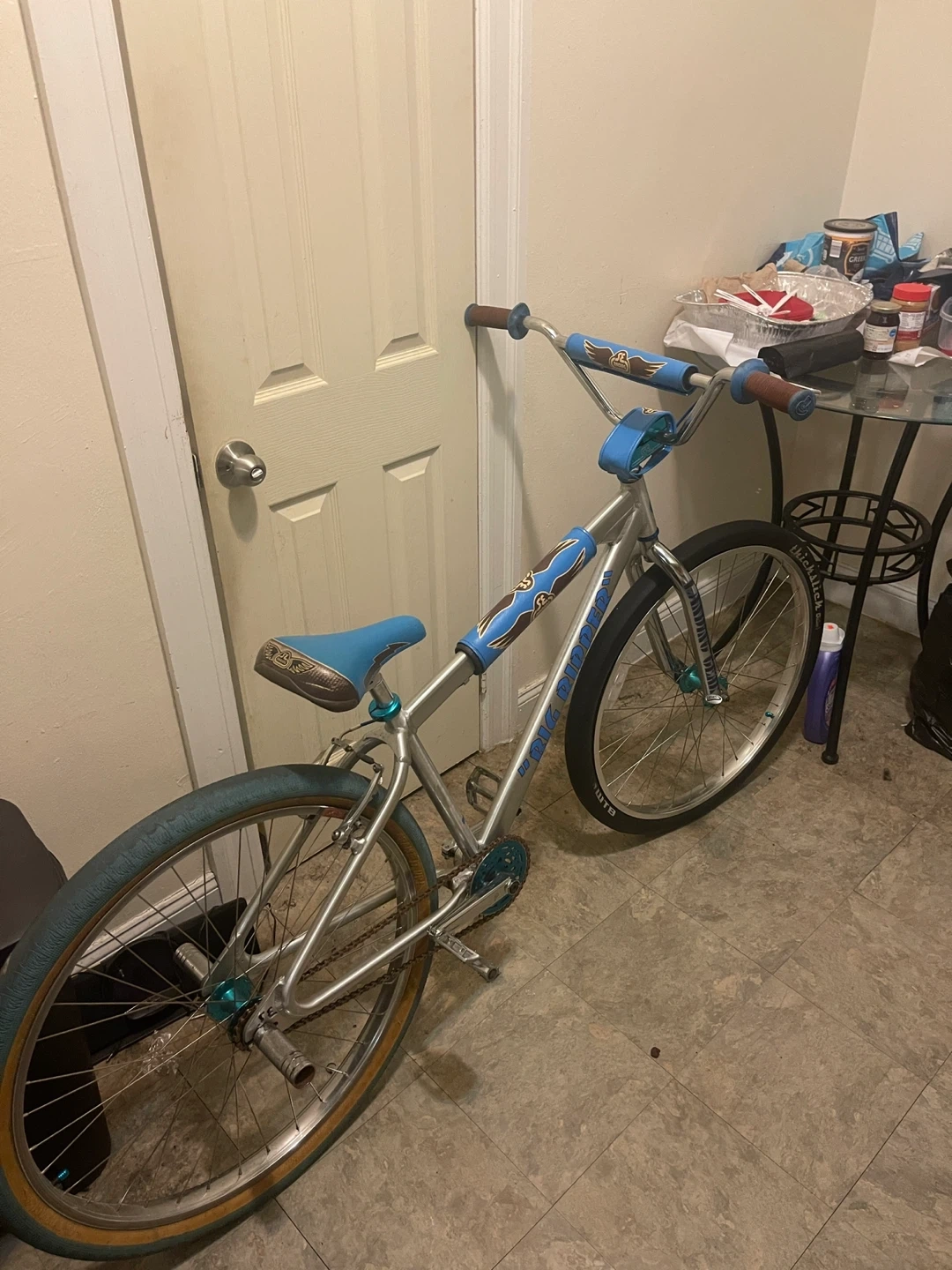 Selling a used SE Bikes So Cal Flyer 24" BMX bike. It's in good condition and ready for a new rider! The bike is silver with blue accents. Perfect for cruising around town or hitting the bike park