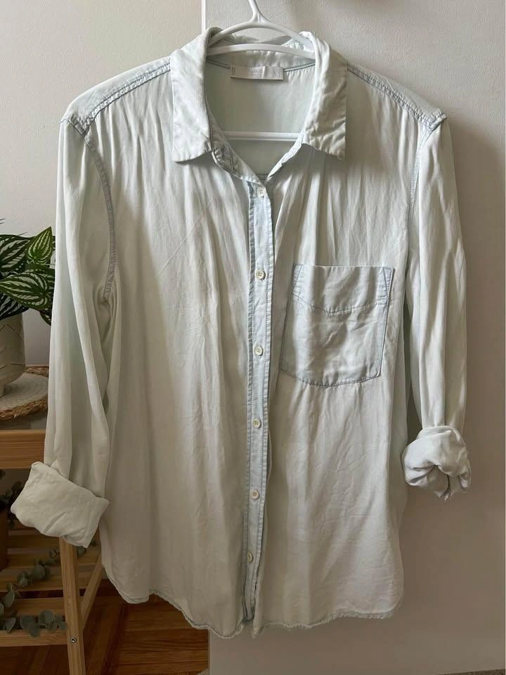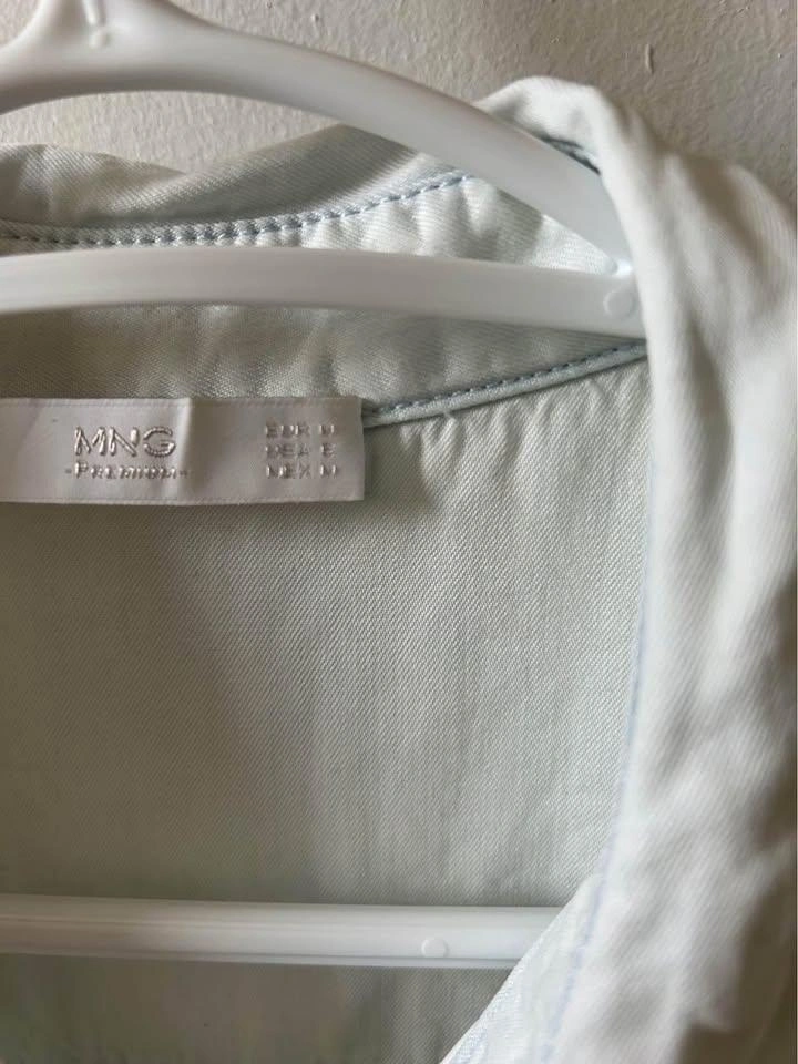 Selling a MNG Premium denim shirt in size M. It's a light blue colour and in great condition! Perfect for layering or wearing on its own