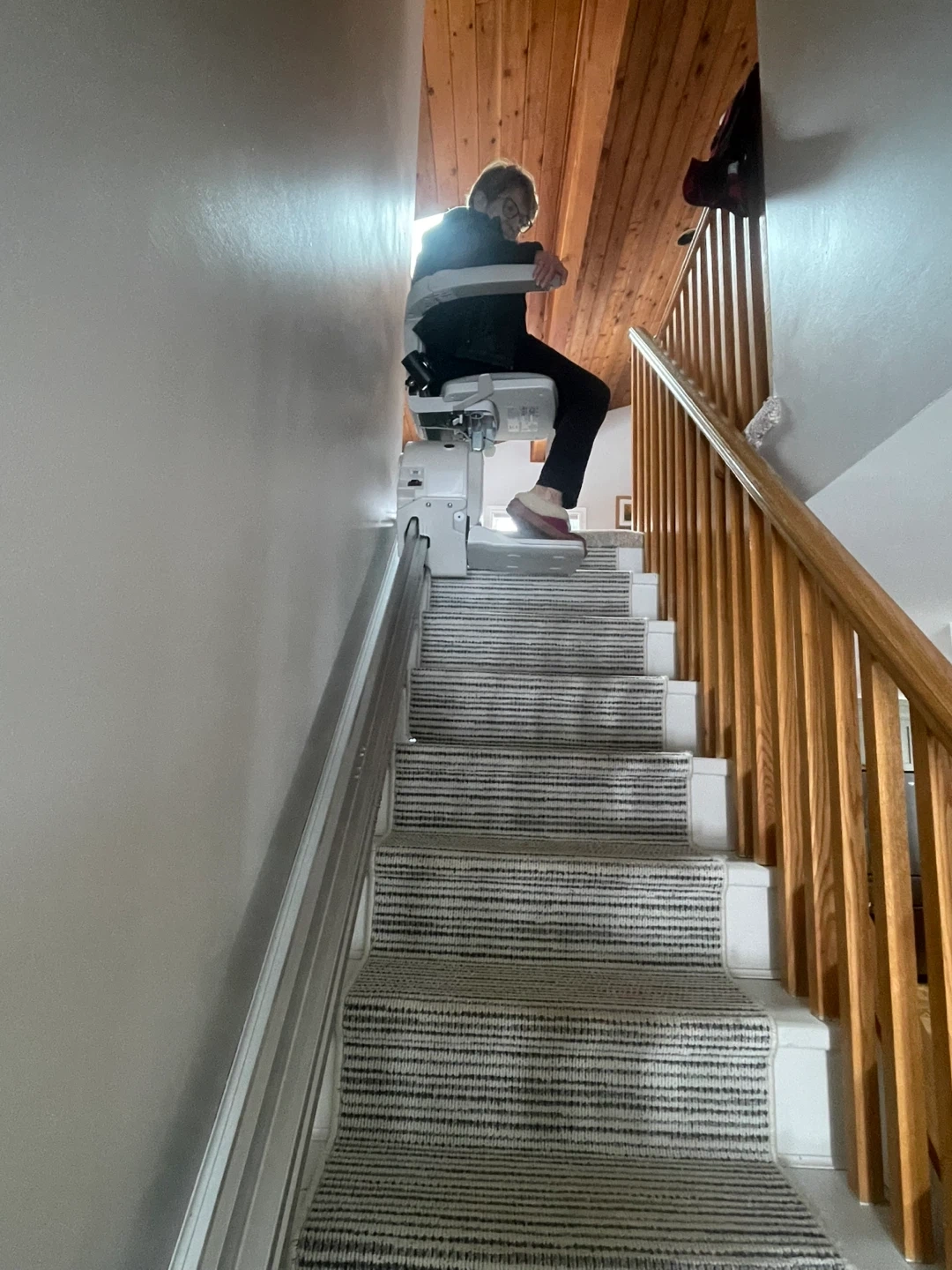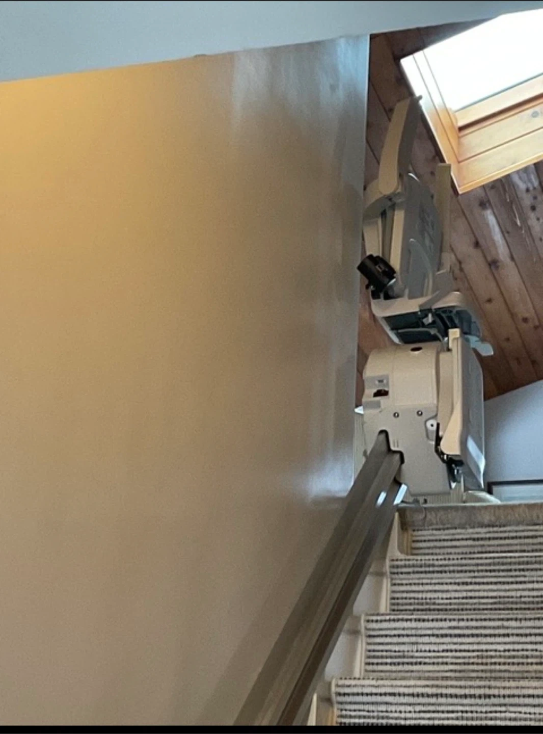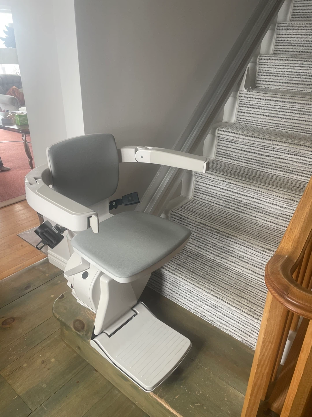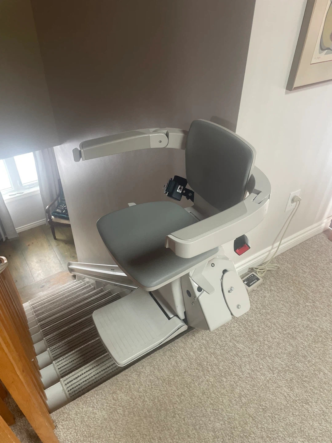 Bruno stairlift for straight stairs. It has a comfortable padded This stairlift is great for improving accessibility within your home.