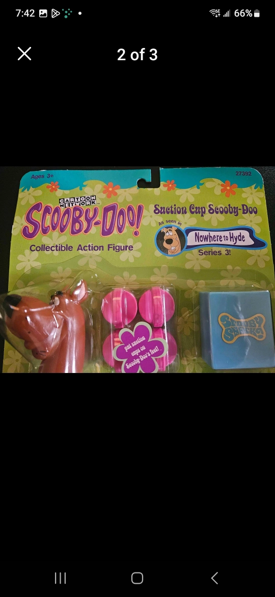 Scooby Doo collectible action figure suction cup Scooby Doo as seen in series 3 episode Nowhere to Hyde. New in package, bought many years ago and never opened. Just on display in a glass cabinet as part of my collection. Great collectible to add to any Scooby Doo fans collection. I believe they do not make these anymore. From a smoke free, pet friendly home in Woodstock. Cross posted.