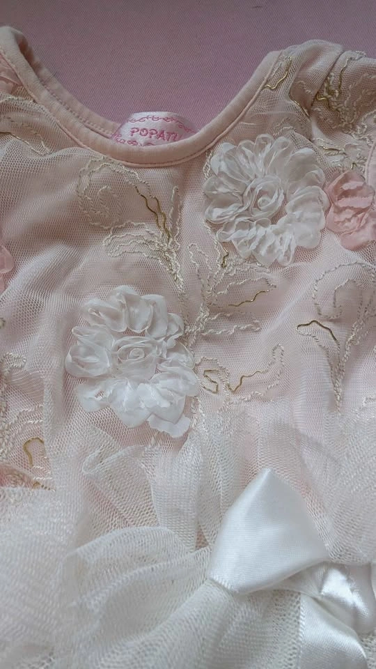 Adorable baby girl clothes bundle. Includes a super cute POPATO pink floral romper with tulle and a white bow. Also a pink ruffled top, striped leggings with little pink bows, and a cream quilted vest. All in great shape. Pickup only at St Clair Ave East and O'Connor.