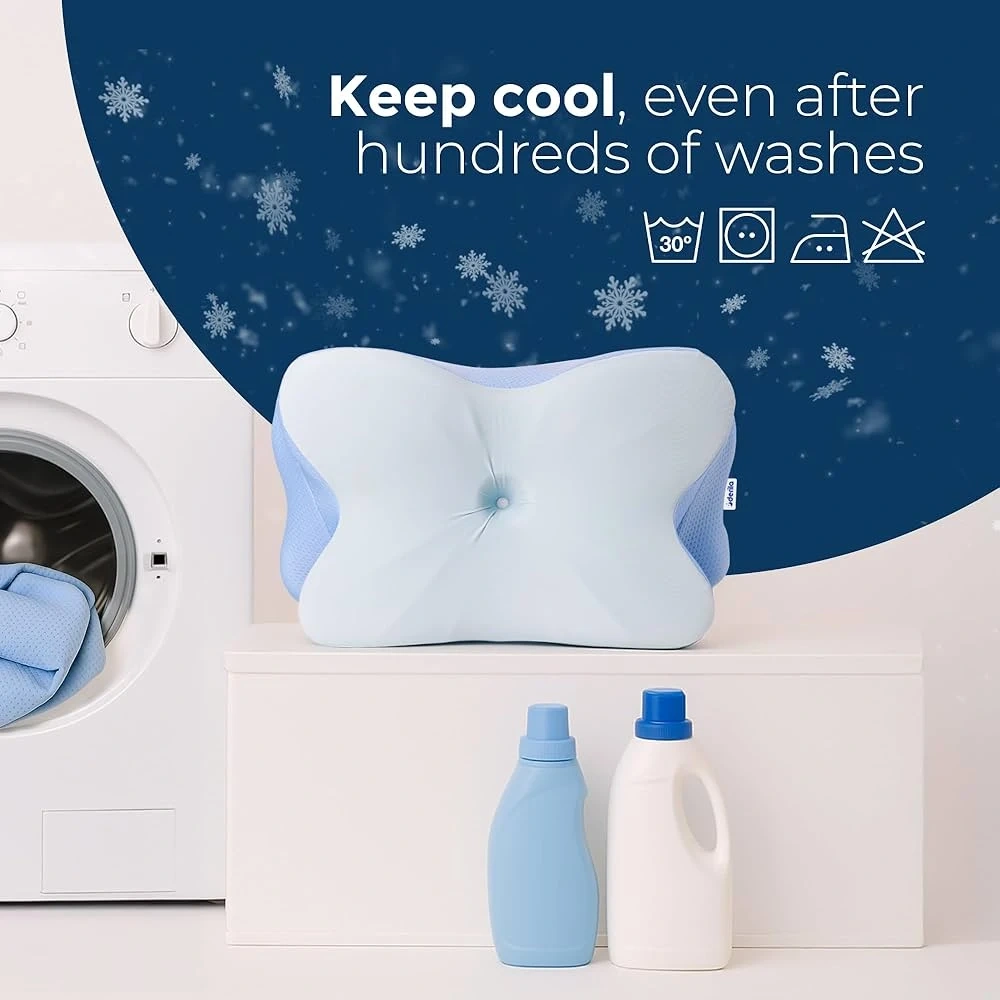 This Derila Ergo pillow provides comfort and support for your neck and head. It's designed with breathable materials to help keep you cool. Machine washable and durable for long-term use. Offers ergonomic contouring for improved sleep posture.