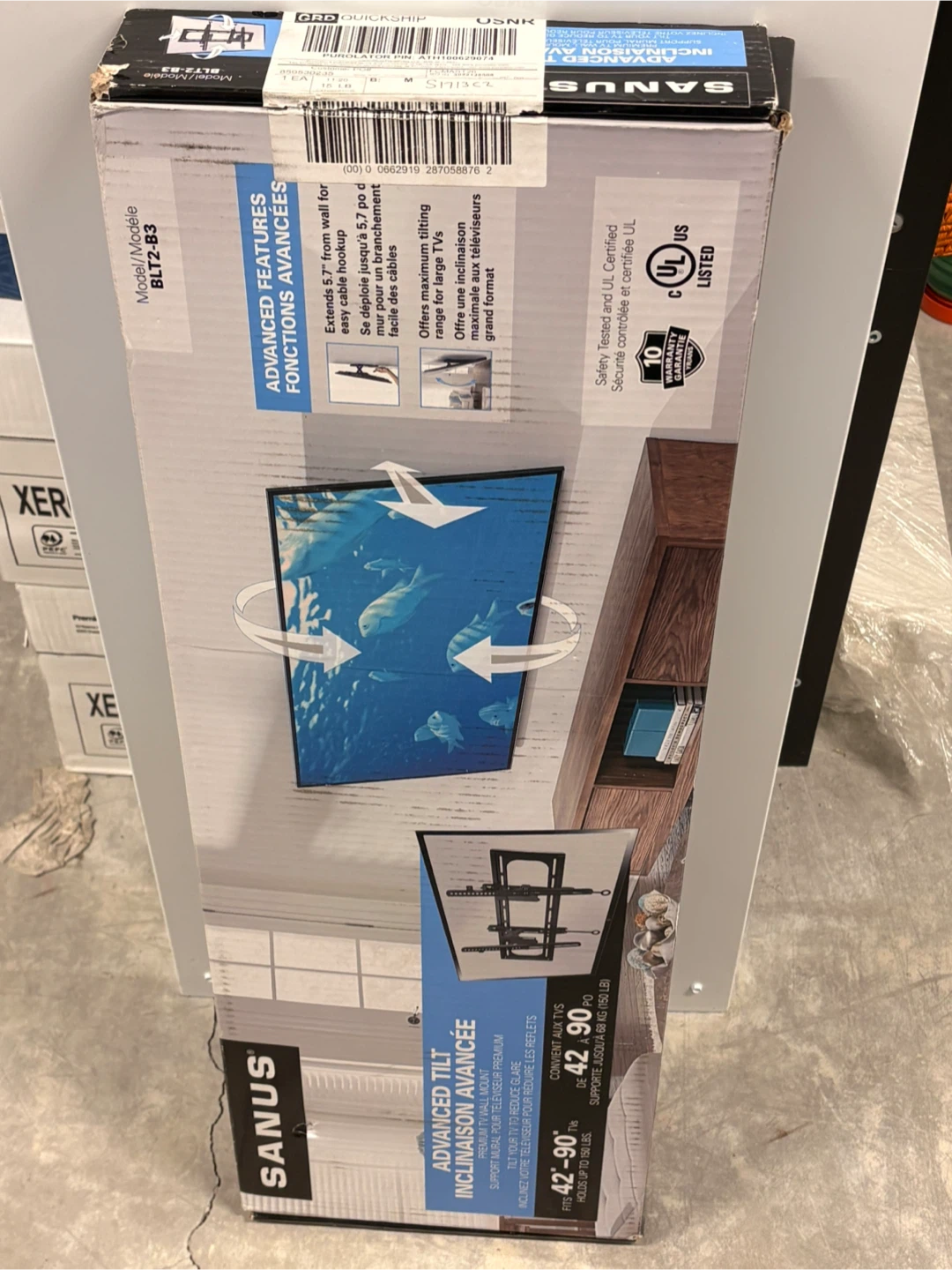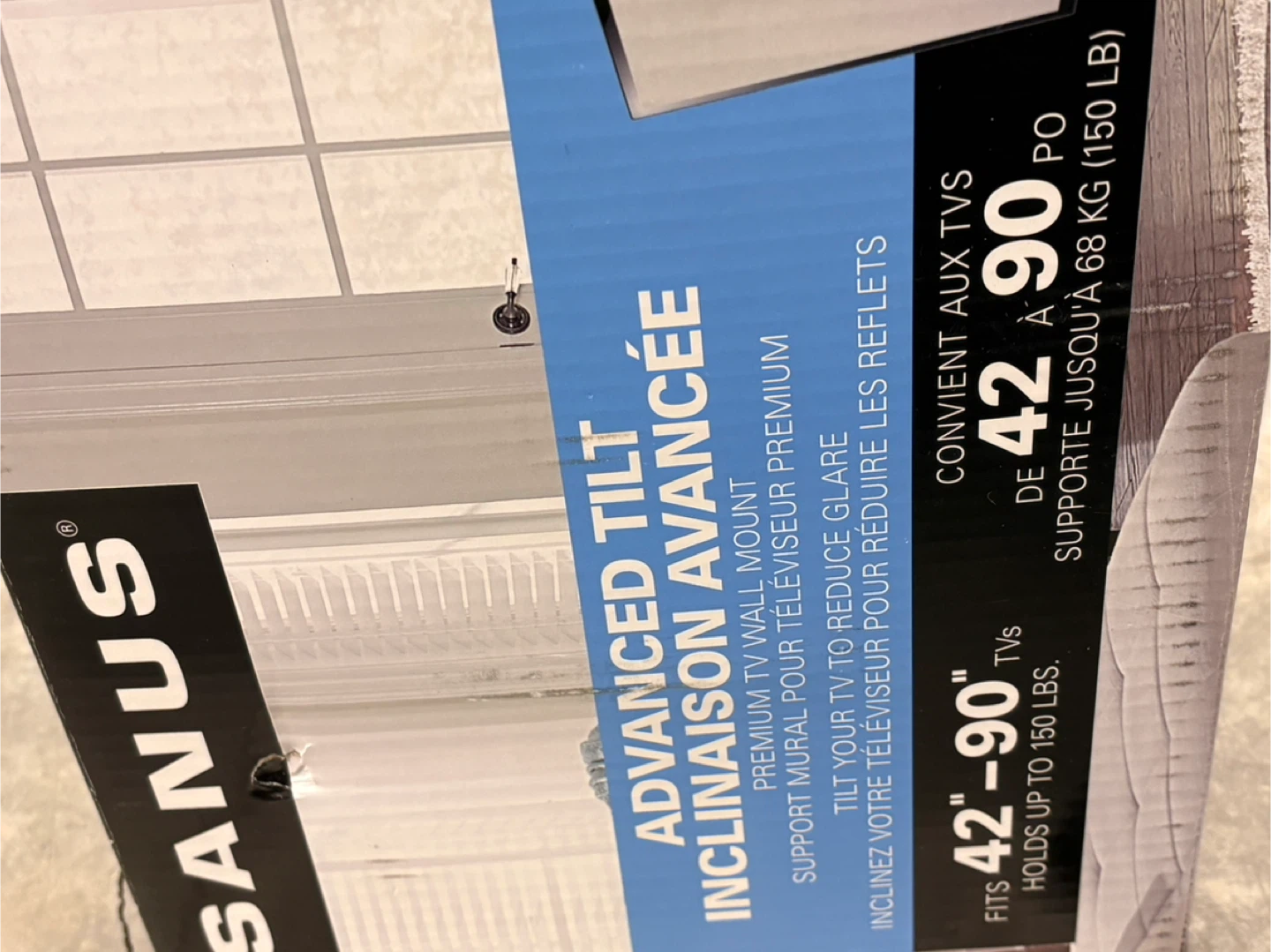 Selling a Sanus Advanced Tilt TV Wall Mount, fits TVs from 42" to 90" and holds up to 150 lbs. It extends 5.7" from the wall for easy cable hookup. The box is in opened.