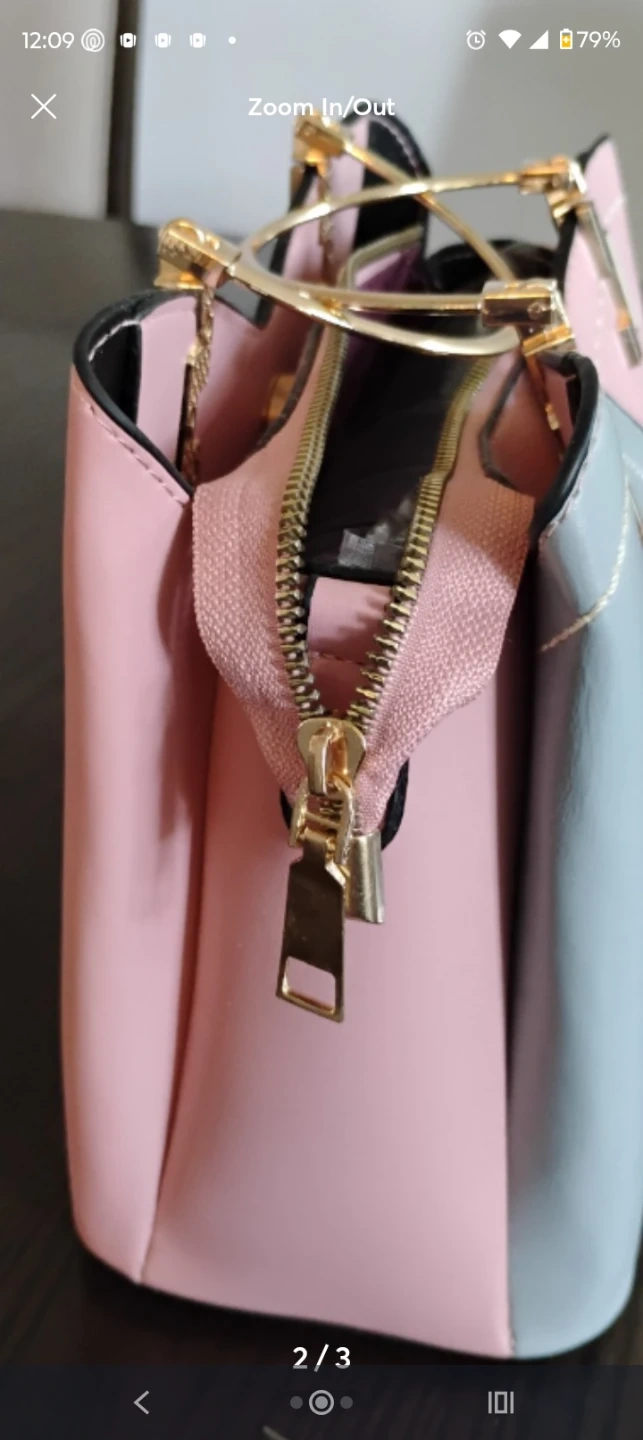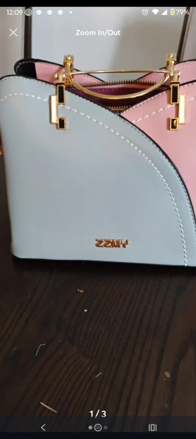 Selling a cute color block handbag from ZZMY! It features a unique design with gold-tone hardware and a zipper closure. Perfect for adding a pop of color to any outfit