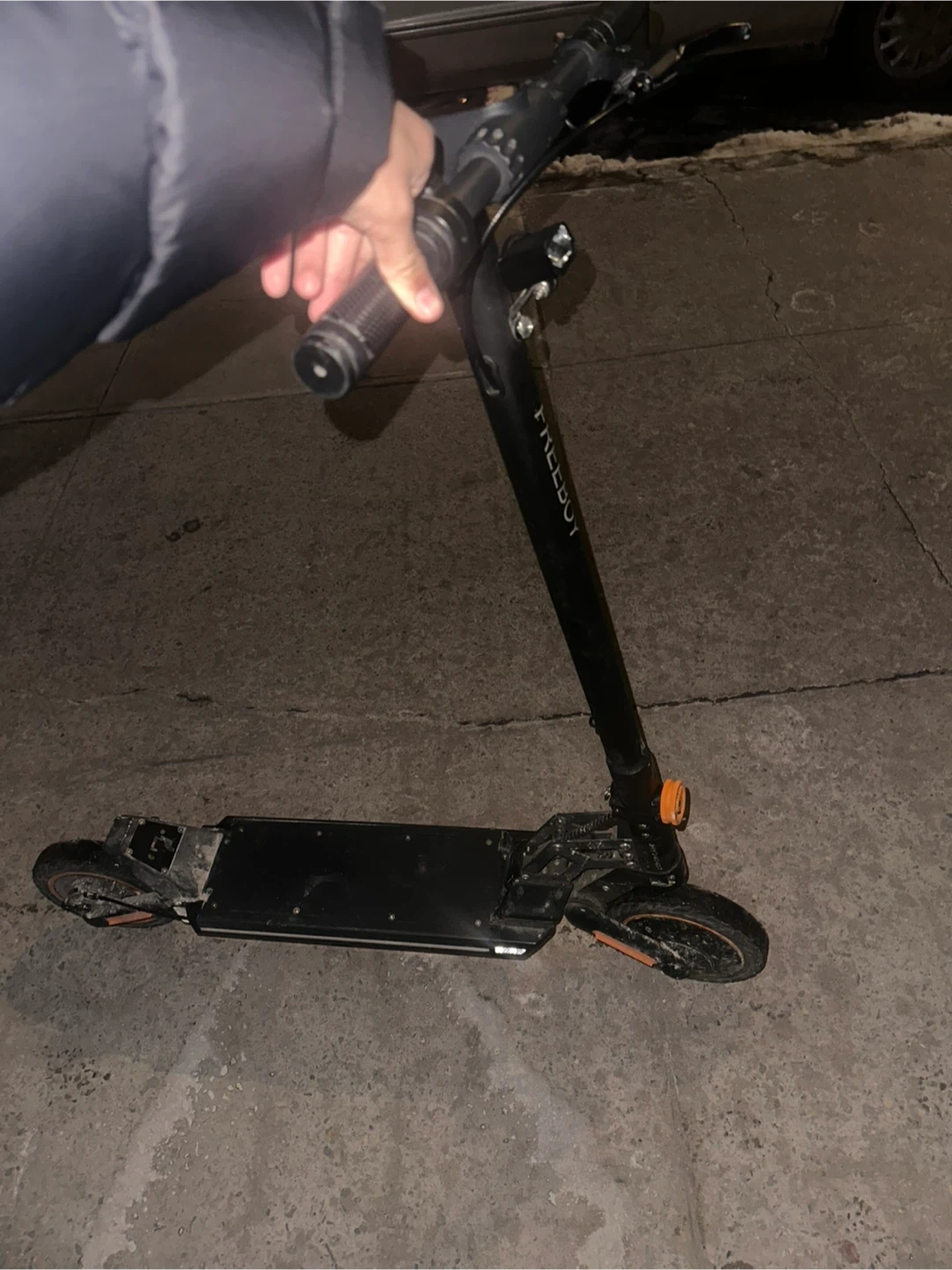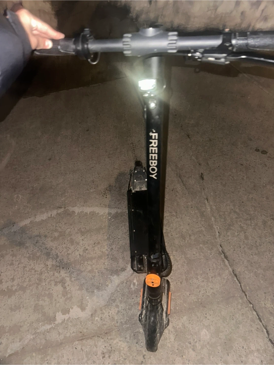 This is a FREEGO electric scooter. It's black and has a sleek design. Great for getting around town! but is missing his battery!