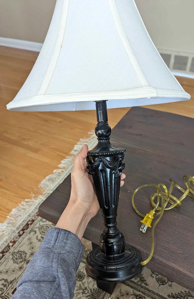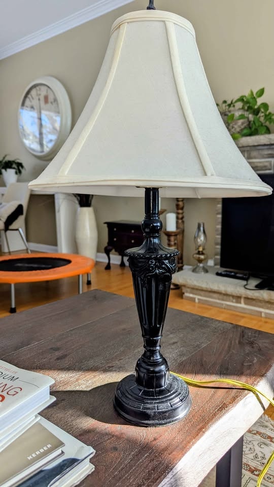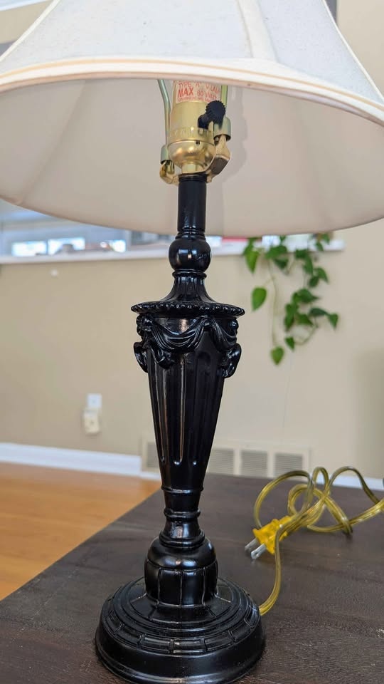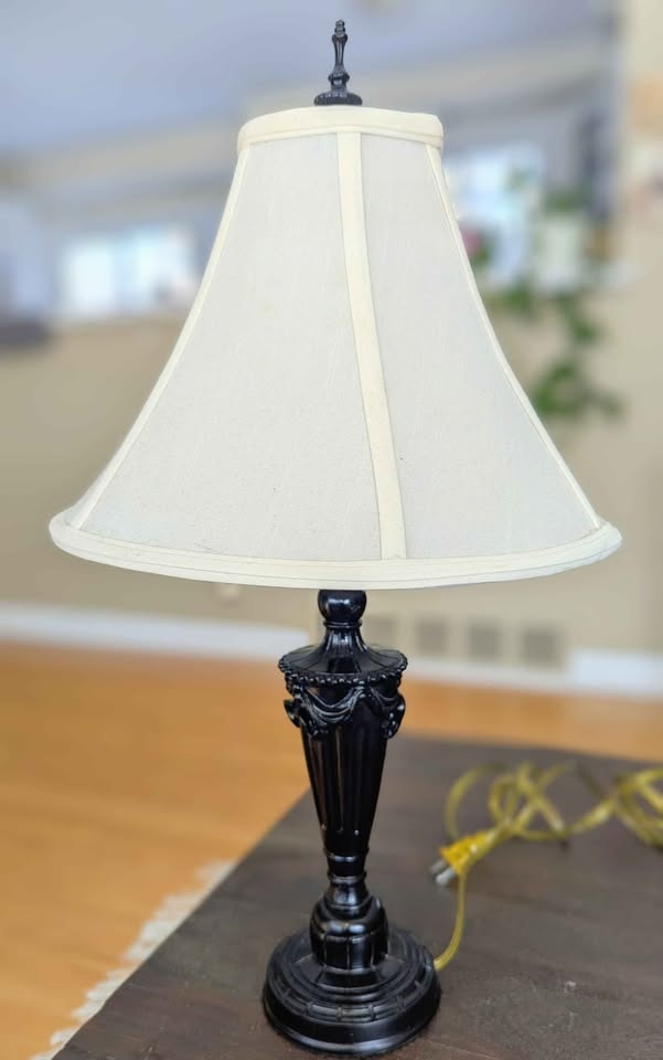 Working, nice looking mini lamp, it's 22" height, the shade is about 9" long. It has some minor stains, please note. The base is in good condition! Pickup asap, price is firm.