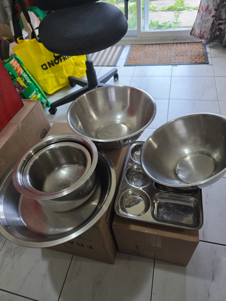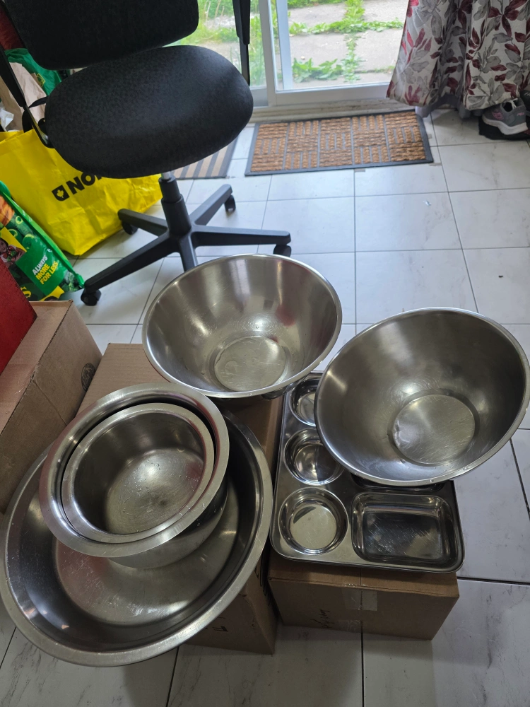 1 big stainless stell salad prep/ dough prep ( 14.2 inches diameter)