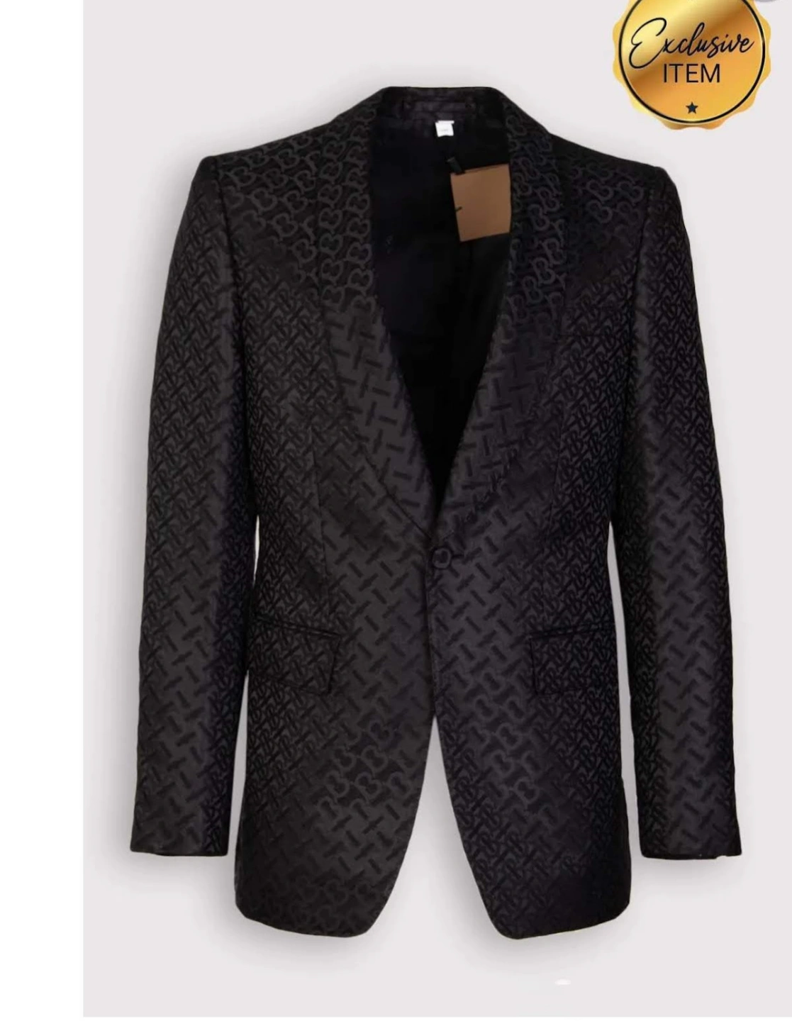 Authentic Burberry Men's black blazer. Regular fit. Shawl collar. Button closure. Features pockets. Silk blend fabric. Dry clean only. Made in Italy. Brand new. Regular retail price $2,565