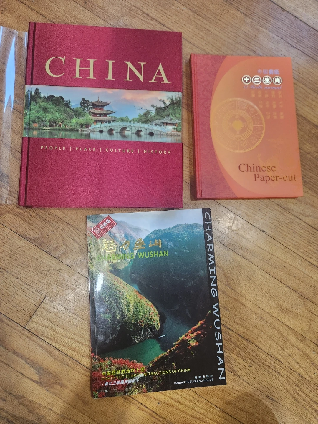 Selling a set of three books: - China: People, Place, Culture, History - Charming Wushan: Top Tourist Attractions of China - Chinese Paper-cut They're very pretty, but don't match my decor. Perfect for staging or decorating as a conversation piece