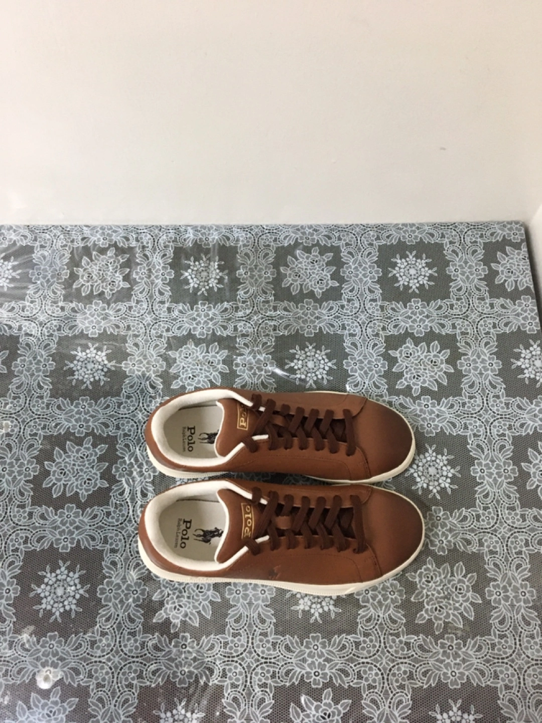 Stylish brown leather sneakers from Ralph Lauren Polo. Features a classic lace-up design and comfortable rubber sole. These shoes are perfect for everyday wear. Pick up at steeles and Bathurst cash only