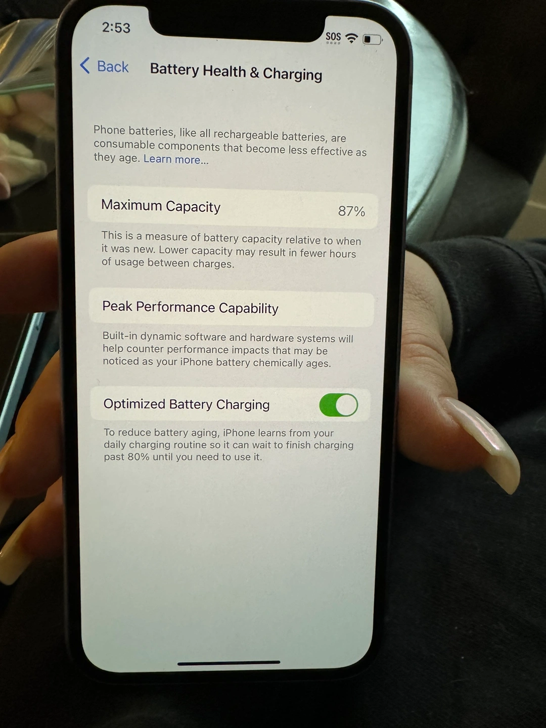 Phone is in like new condition, I’ve had it in a case since I bought it. There are a couple scratches on the sides, but nothing very noticeable.