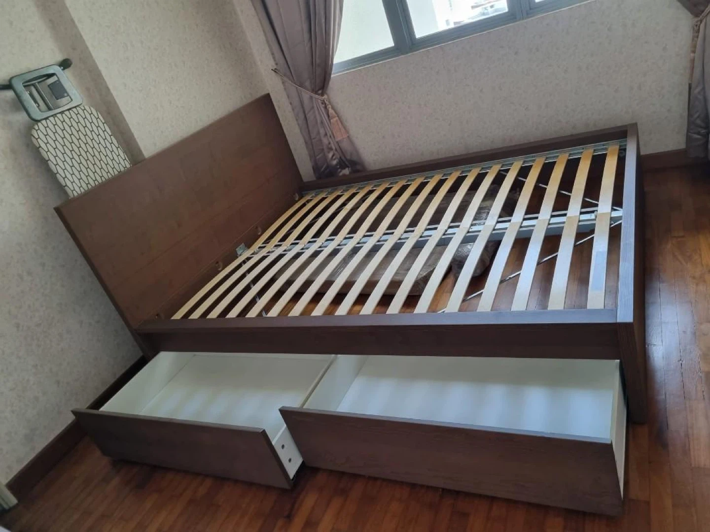 Queen Size Brown Ash IKEA Malm Bed Frame / 2 Drawers