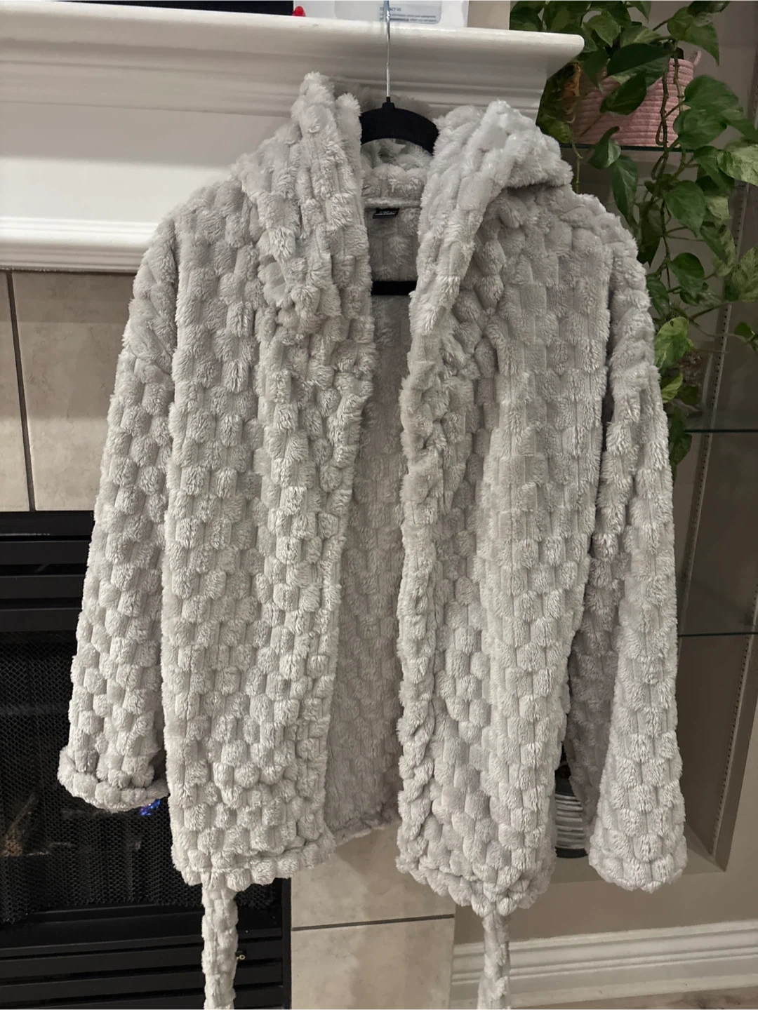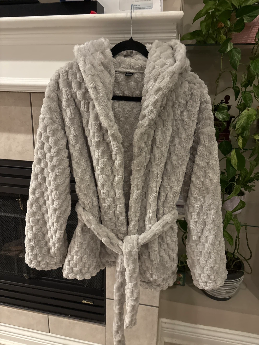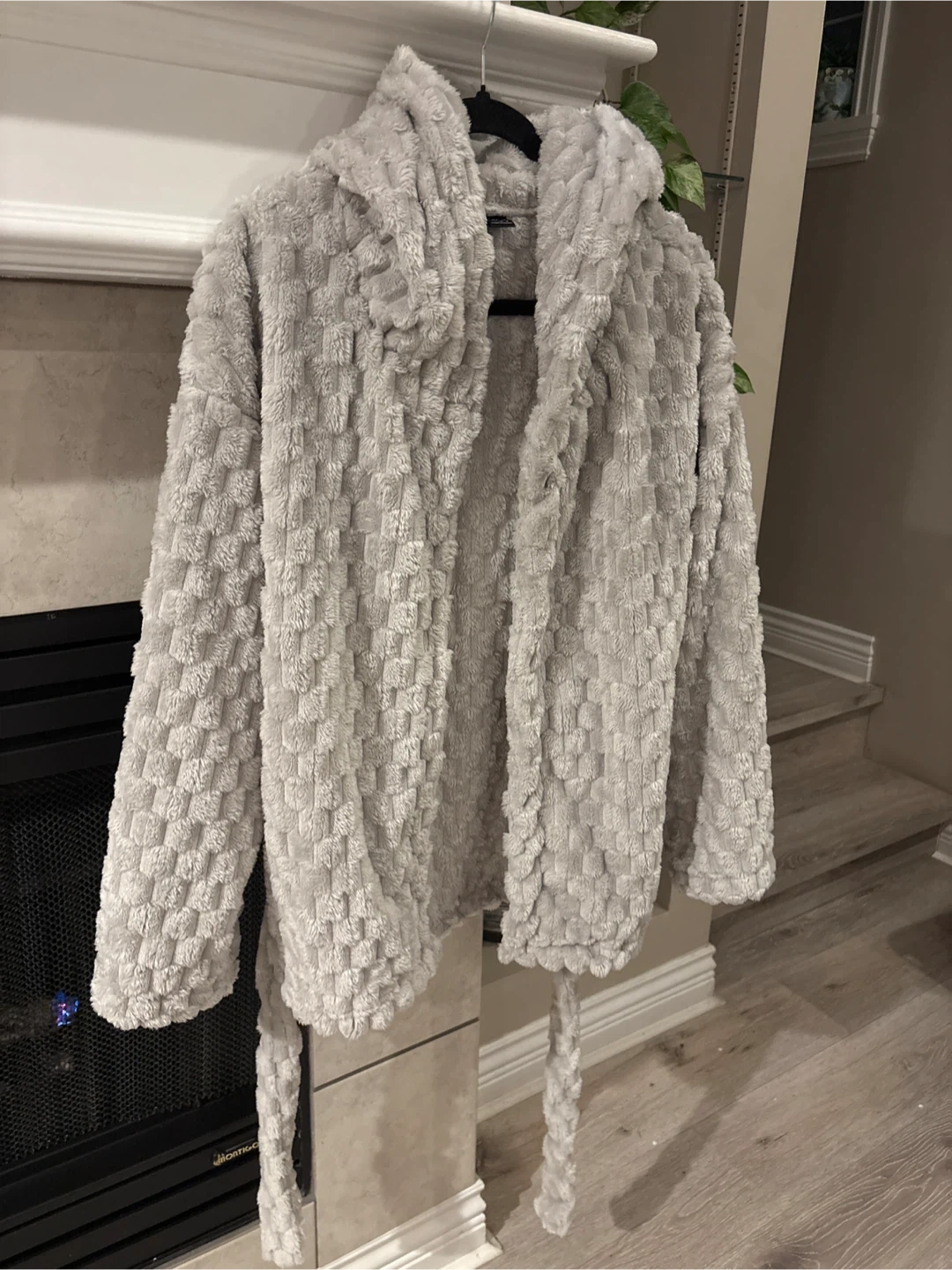 Selling a cozy grey hooded robe! It's made of a soft, plush material and has a tie waist. Perfect for lounging around the house on chilly days size S pick up walnut grove Langley