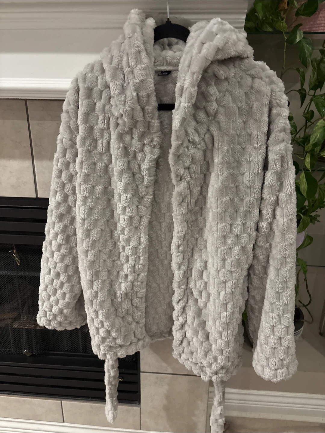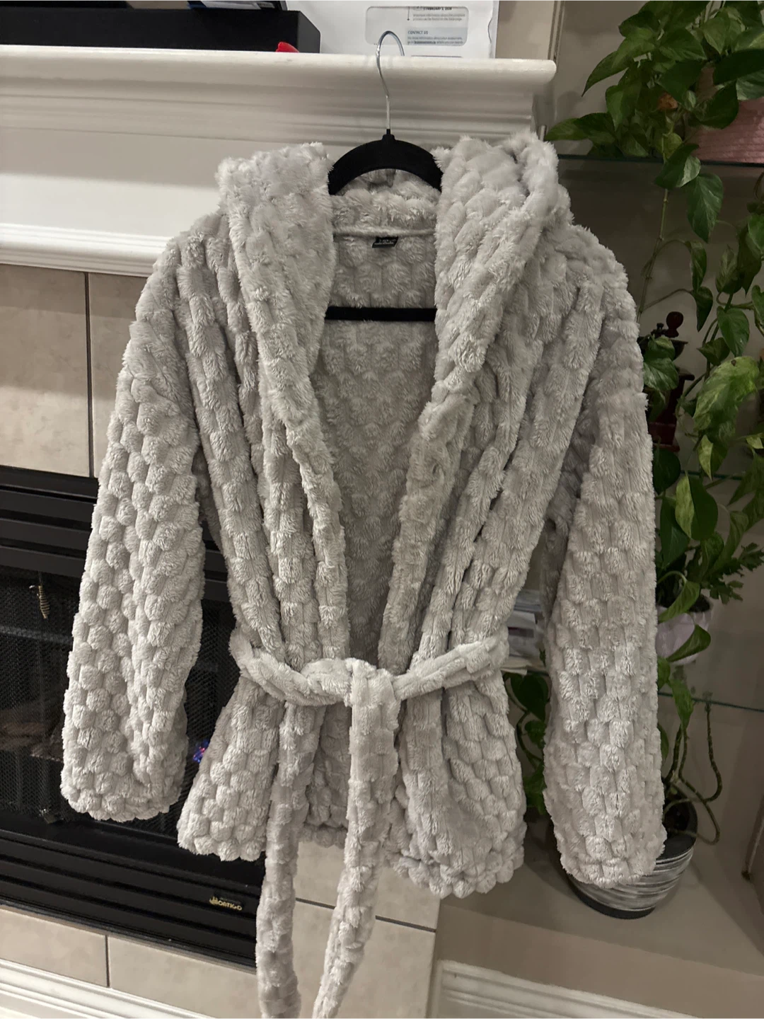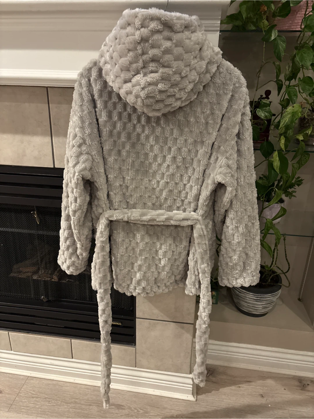 Selling a cozy grey hooded robe! It's made of a soft, plush material and has a tie waist. Perfect for lounging around the house on chilly days size S pick up walnut grove Langley
