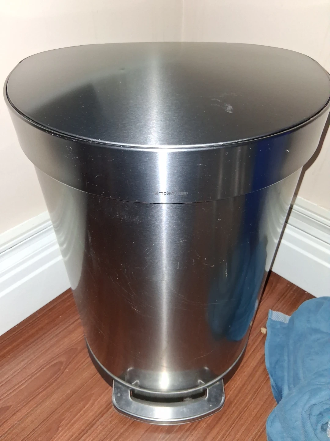 Simplehuman step trash can. It's made of brushed stainless steel. This bin is great for any kitchen or bathroom! 50 liters size. Clean and ready for a new home. Thanks ๐