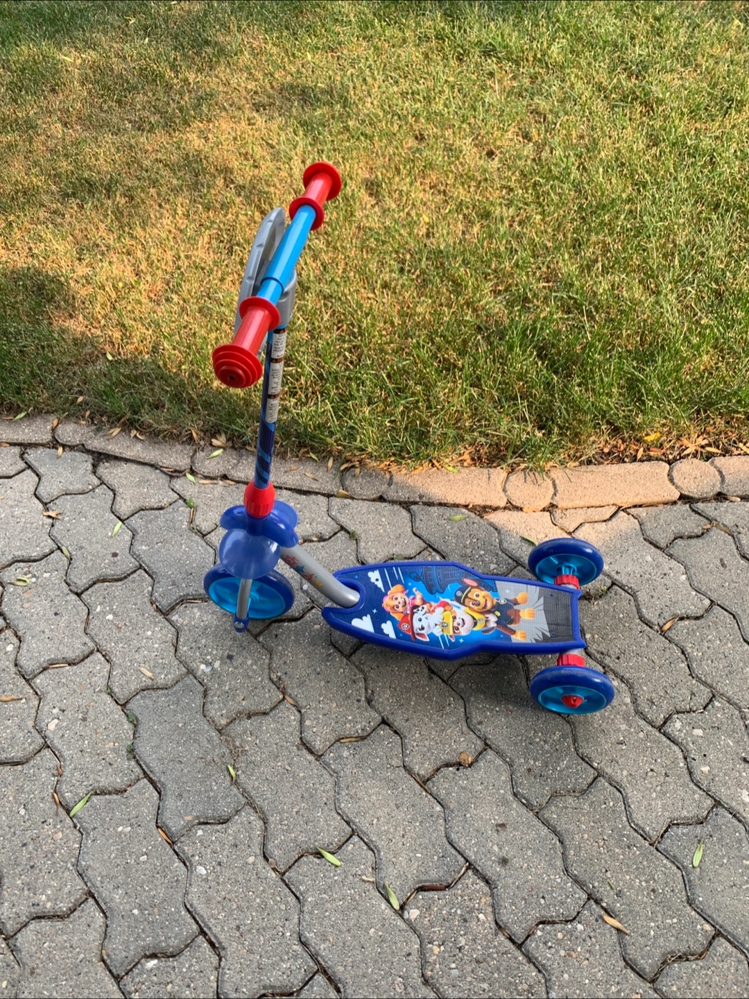 A cute Paw Patrol scooter for kids! It's only been used once, in great shape and ready for a new home. Perfect for little ones who love Paw Patrol and want to scoot around the neighbourhood