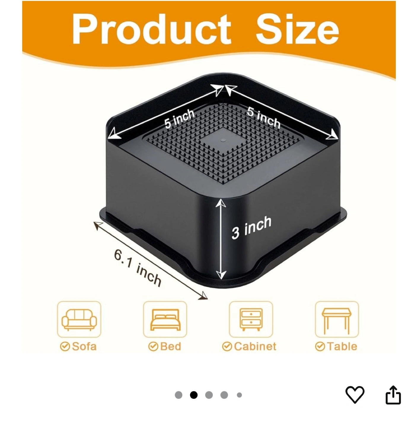 Brand new! Selling a set of furniture risers, brand new in box! These are perfect for raising the height of your bed, sofa, cabinet, or table. They can handle a load-bearing capacity up to 6000.