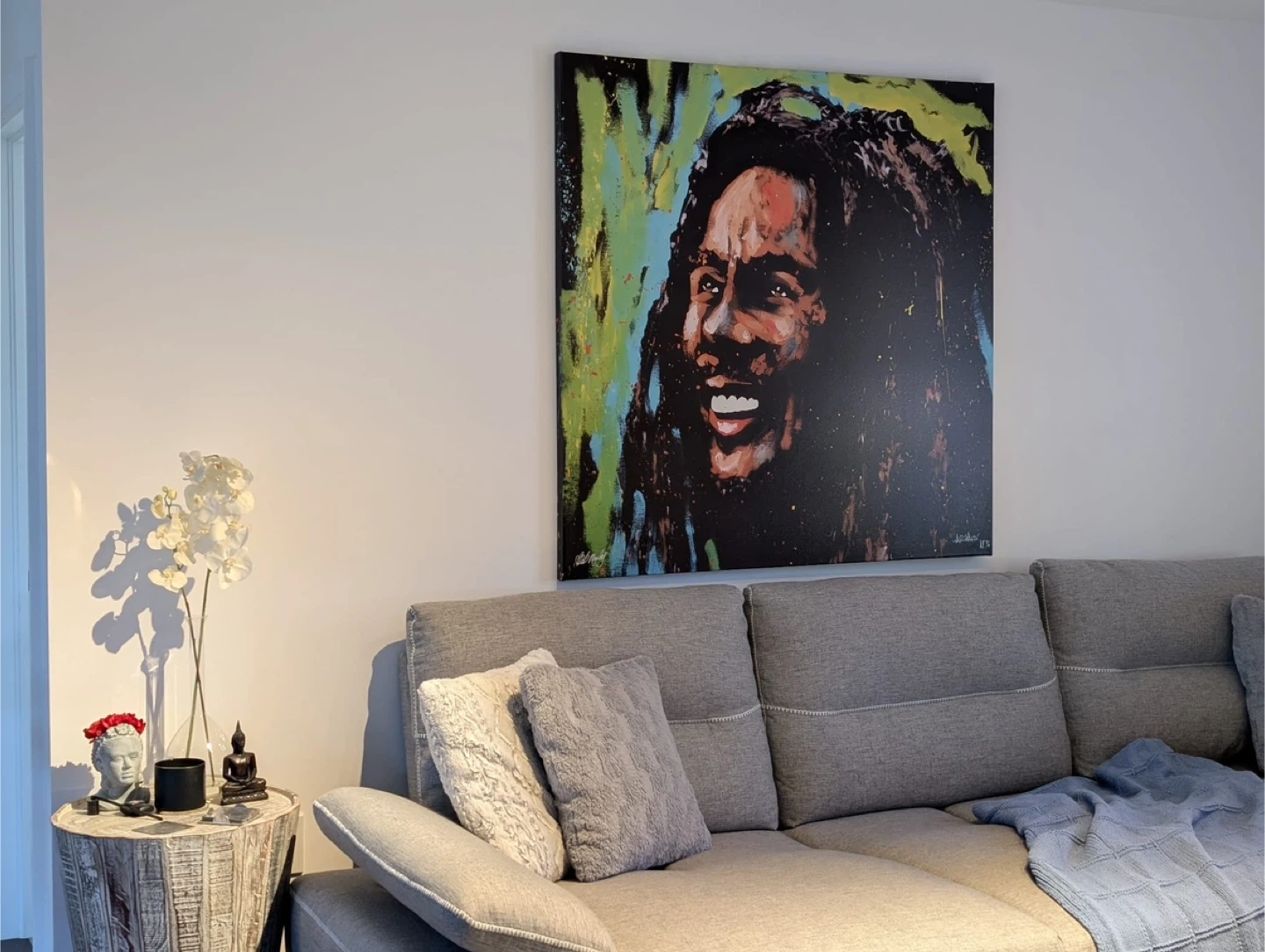 Selling a limited edition art piece by David Garibaldi, titled "Bob Marley". This is a Globe on Canvas piece from 2012. The image size is approximately 48" x 48". This certificate validates piece AP 7/10.