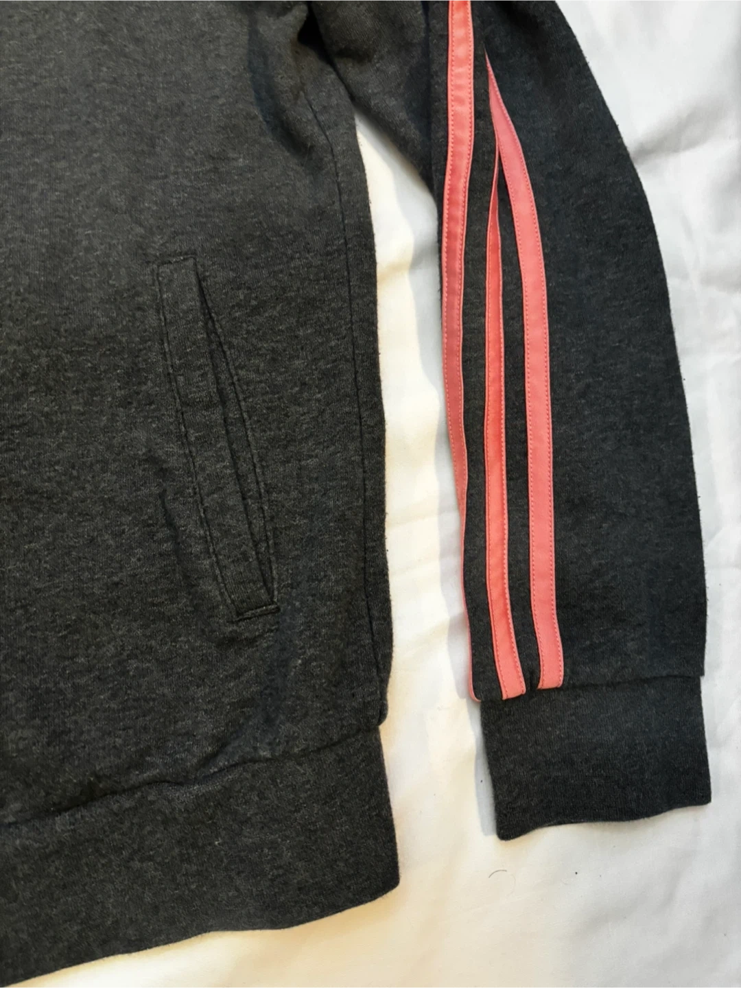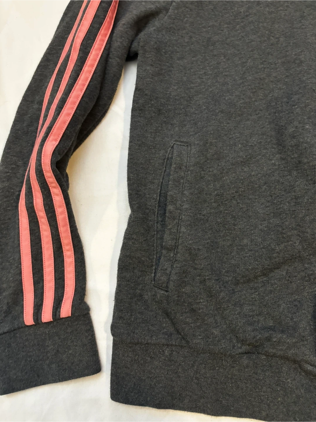 Adidas grey sweater with a pop of pink. Please note sweater is in good condition however does have light signs of wear. $5 cash, porch pick up Kennedy and Eglinton.