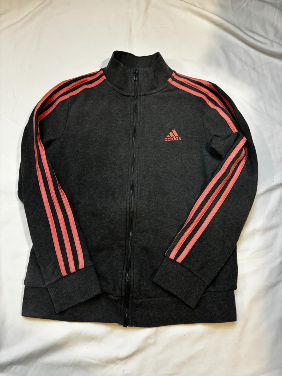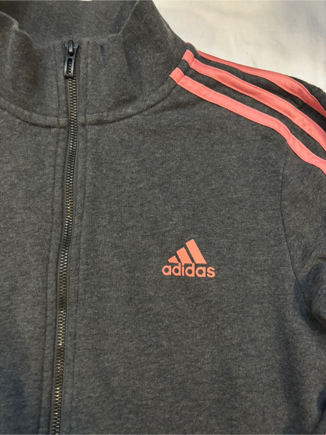 Adidas grey sweater with a pop of pink. Please note sweater is in good condition however does have light signs of wear. $5 cash, porch pick up Kennedy and Eglinton.
