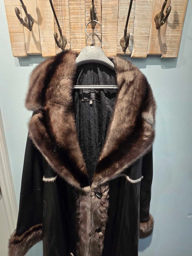 This elegant Harman's winter coat is sure to keep you warm and stylish during the cold months! This beautiful, pre-owned coat is in great condition and features a luxurious fur trim. Perfect for adding a touch of sophistication to any outfit. * Brand: Harman's * Outer Material: Leather * Trim: Real Fur * Size: L (fits sizes 10-12) Why not treat yourself to a coat that’s as unique as you are?
