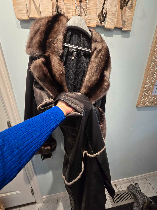 This elegant Harman's winter coat is sure to keep you warm and stylish during the cold months! This beautiful, pre-owned coat is in great condition and features a luxurious fur trim. Perfect for adding a touch of sophistication to any outfit. * Brand: Harman's * Outer Material: Leather * Trim: Real Fur * Size: L (fits sizes 10-12) Why not treat yourself to a coat that’s as unique as you are?