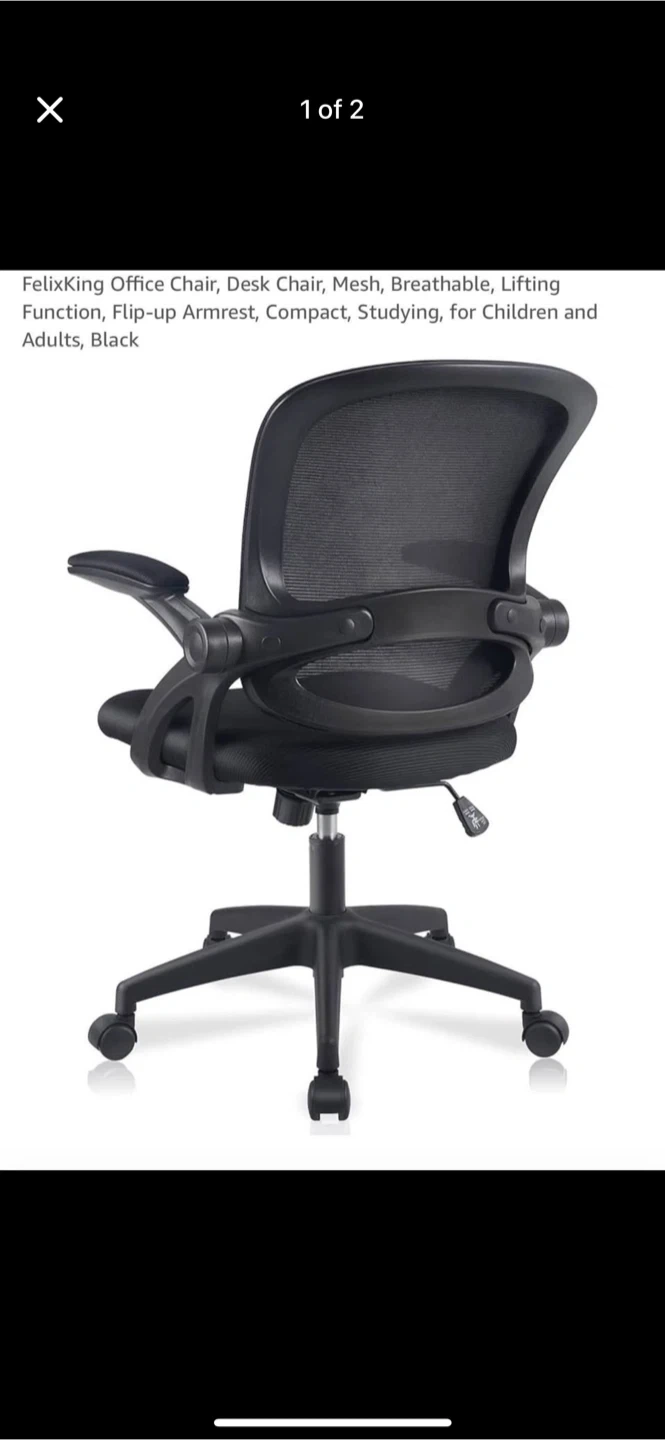 10Selling a FelixKing office chair in black! It's a desk chair with a mesh back, designed to be breathable. It has a lifting function and flip-up armrests, making it compact and great for studying. Suitable for both children and adults