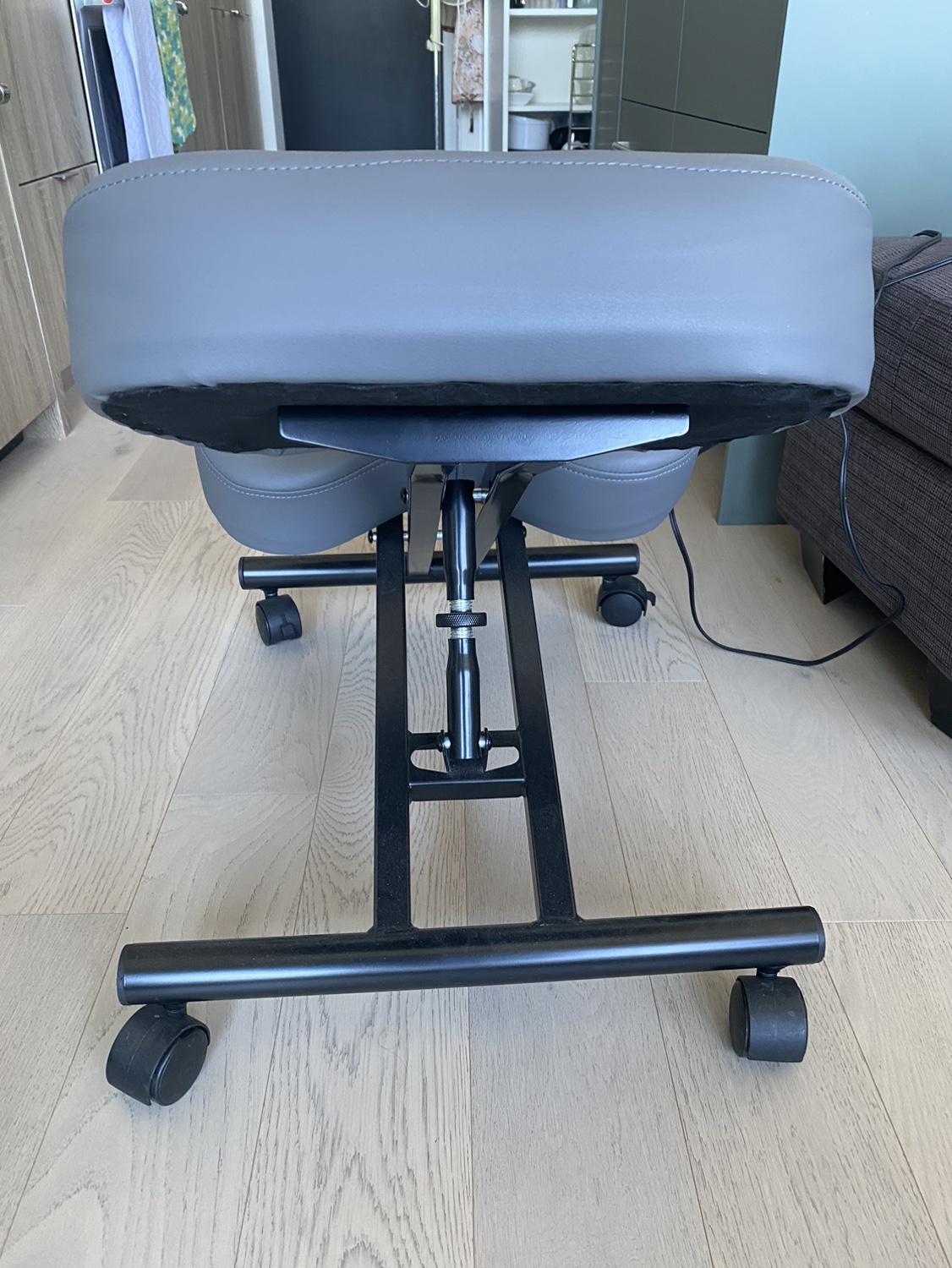 40Ergonomic Kneeling Chair, Adjustable for Home and Office - Bought to help with back injury and now have a replacement. Good for posture. Thick Comfortable Cushions. Gray. Can be adjusted depending on height. On wheels for east movement. Holds up to 250lbs. Pickup south end of oak wood village. Comes assembled. See reviews on Amazon here: https://a.co/d/hv2ElTP.