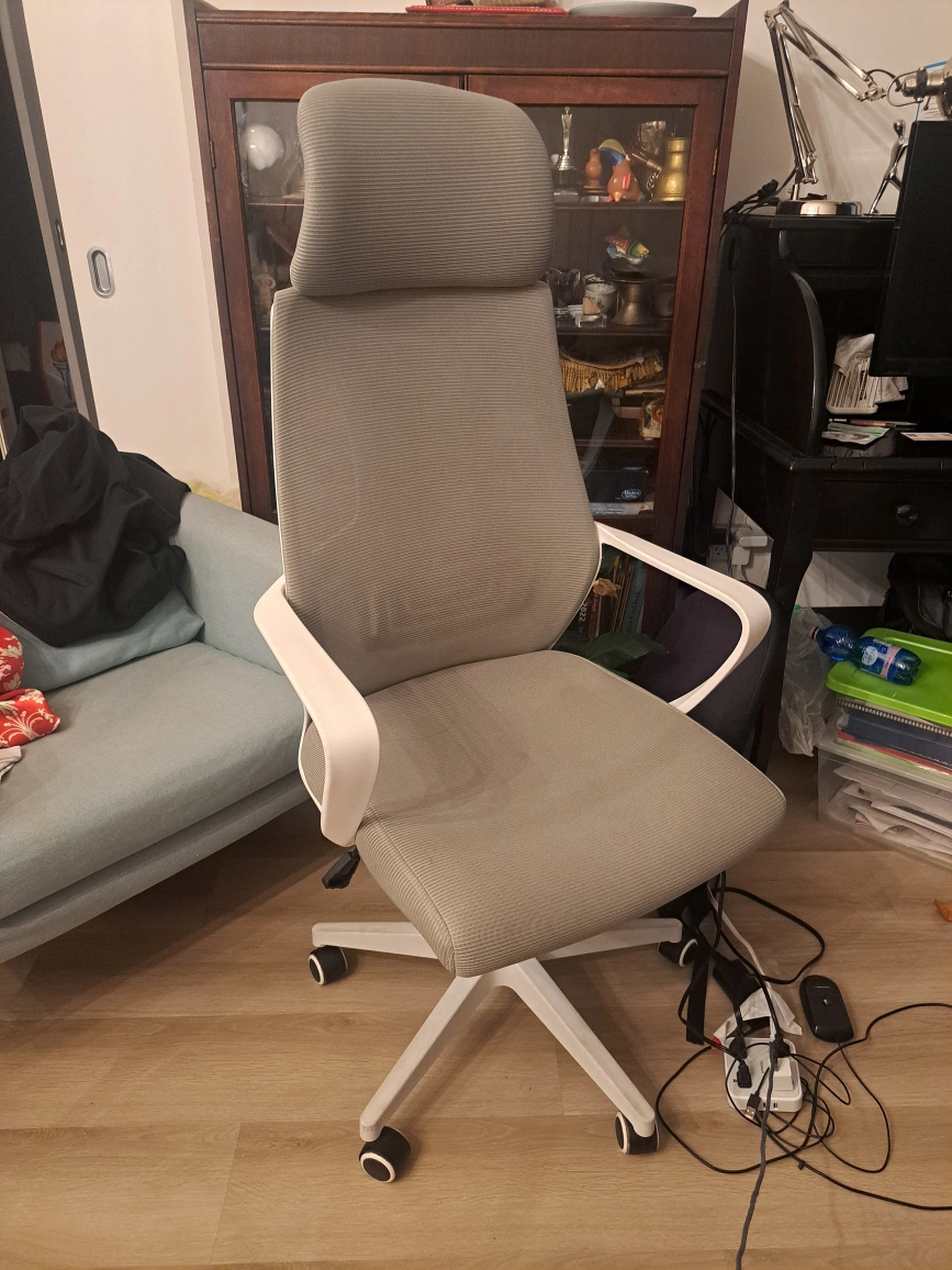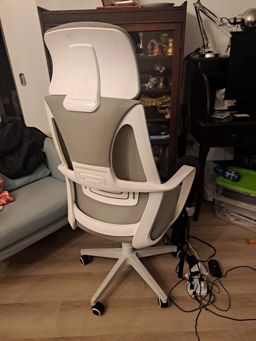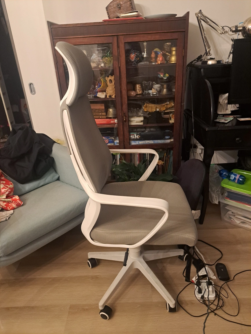 Selling a comfortable and supportive ergonomic office chair. It features adjustable geight. A grey and white design that will fit nicely into any office setting. This chair is perfect for long hours of work or study, providing excellent back support and promoting good posture. It's in great condition and ready for a new home!