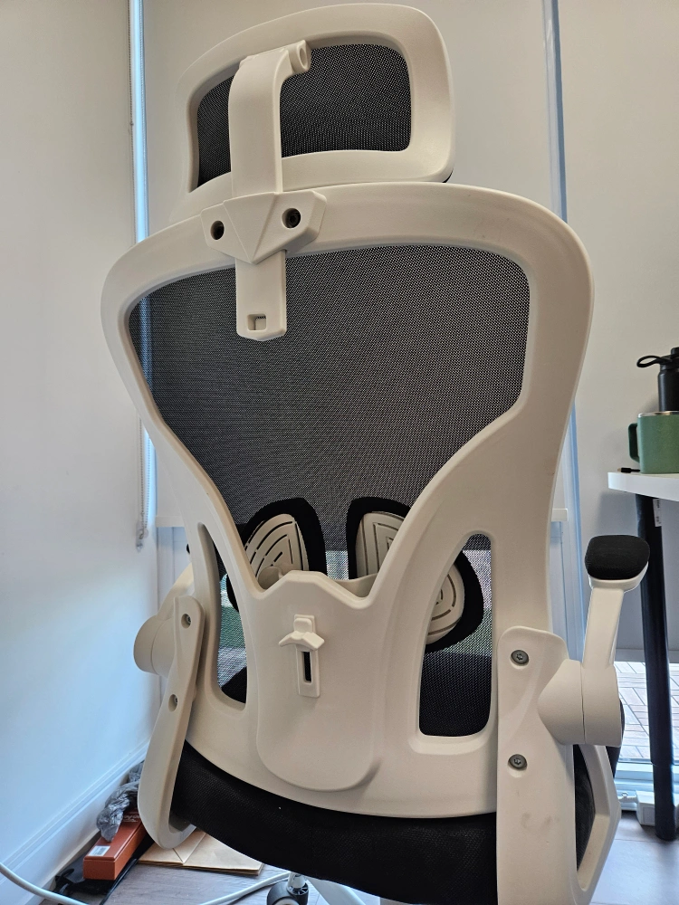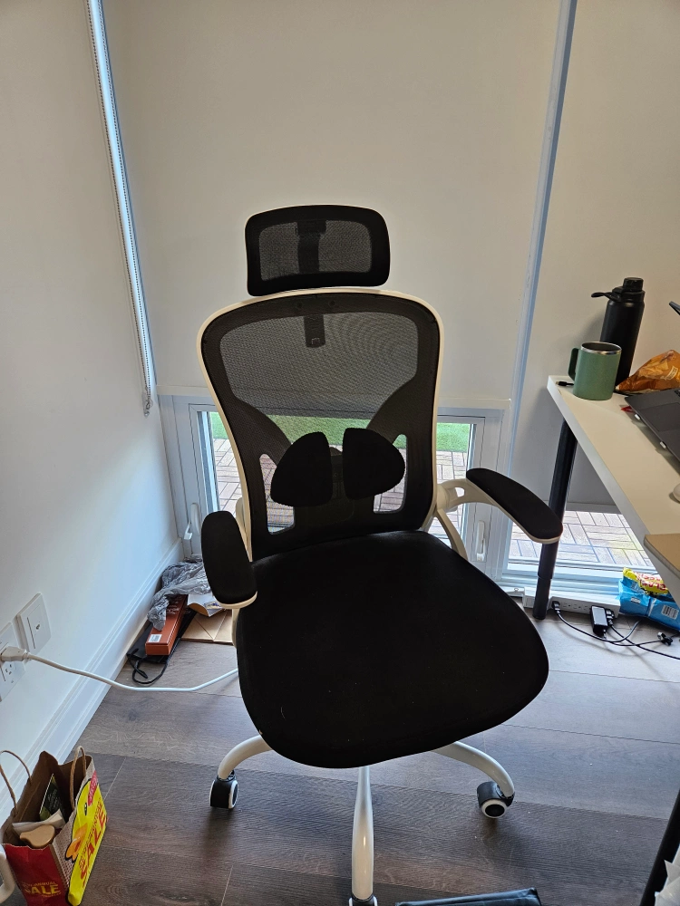 75Nice office chair. Mesh back. Comes with a headrest. Has armrests. adjustable armrests, height and tilt. Would make a great addition to any home office, perfect for finding a comfortable position while working throughout the day.