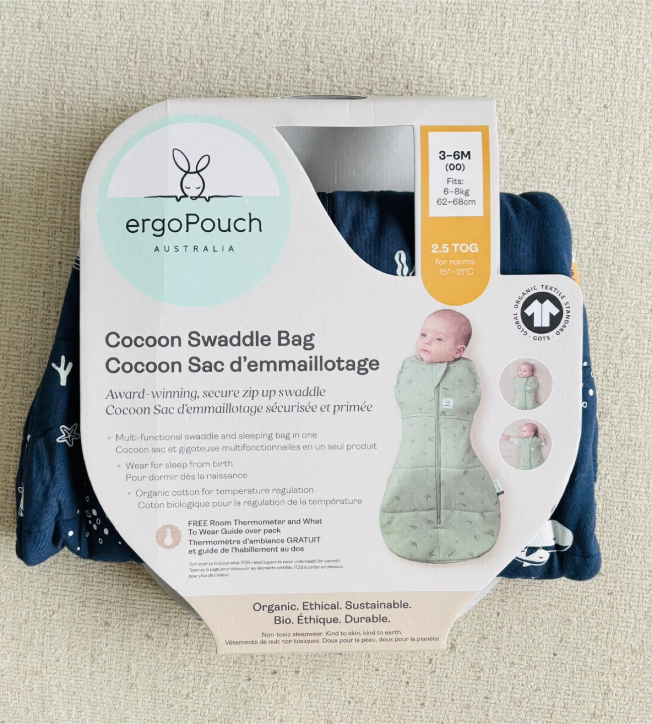 10This is an ergoPouch Cocoon Swaddle Bag, sized 3-6M (00). It's a multi-functional swaddle and sleeping bag in one! Designed for rooms 15-21°C with 2.5 TOG. It also comes with a FREE Room Thermometer and What To Wear Guide in each pack