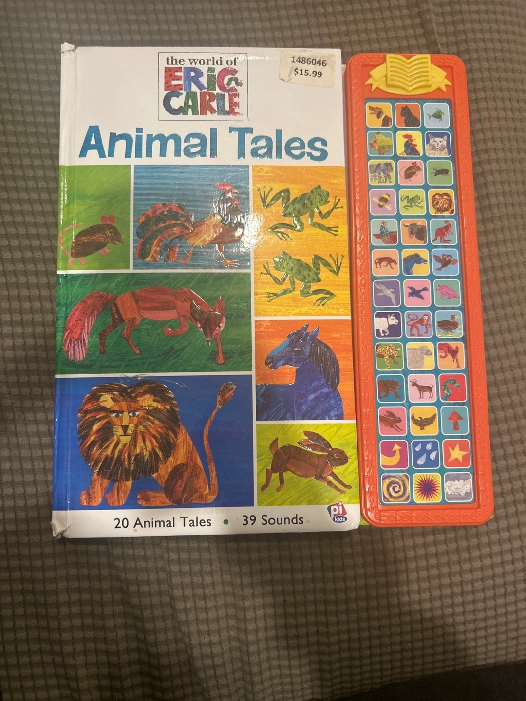 Eric Carle Animal Tales book. Features 20 animal tales and 39 sounds. Includes a corresponding sound button.