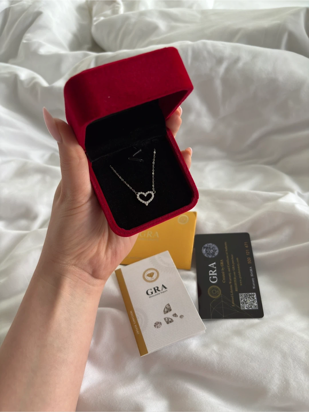 This silver 925 necklace features a heart-shaped pendant encrusted with moissanite stones. It comes with a GRA Moissanite Report and certificate of authenticity. Includes a red velvet jewelry box, pick up New West