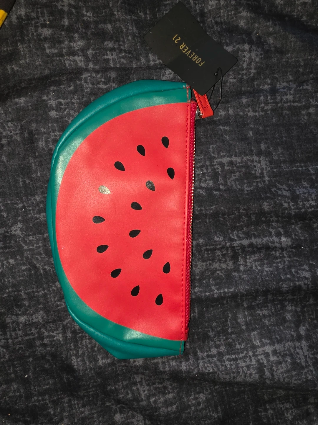 Cute watermelon-shaped coin purse from Forever 21. It's perfect for storing small essentials like coins, cards, or makeup. Zipper closure keeps your items secure!