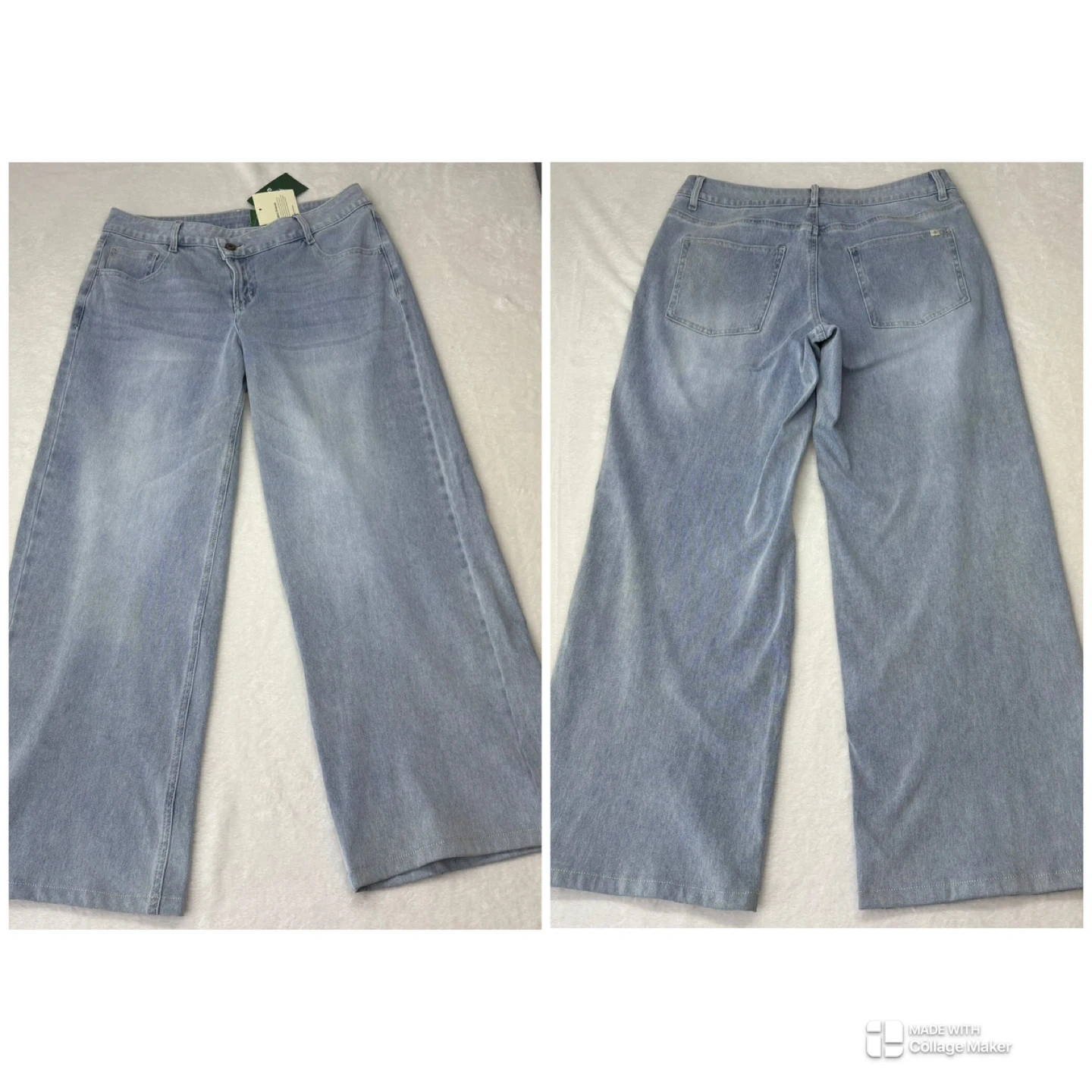 These Halara wide leg jeans feature a unique crossover waistband and a comfortable low-rise fit. Made from a stretchy denim blend, they offer a baggy silhouette through the leg. While they are brand new with tags, they have been professionally hemmed to a 28-inch inseam, making them perfect for petite heights.
