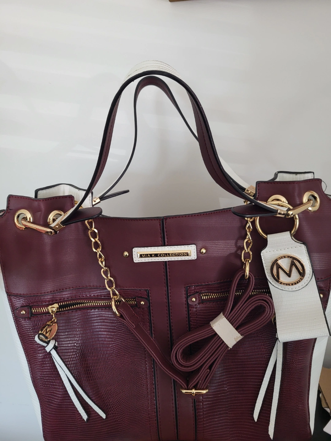 Mia K. Collection Burgundy and White Tote Bag