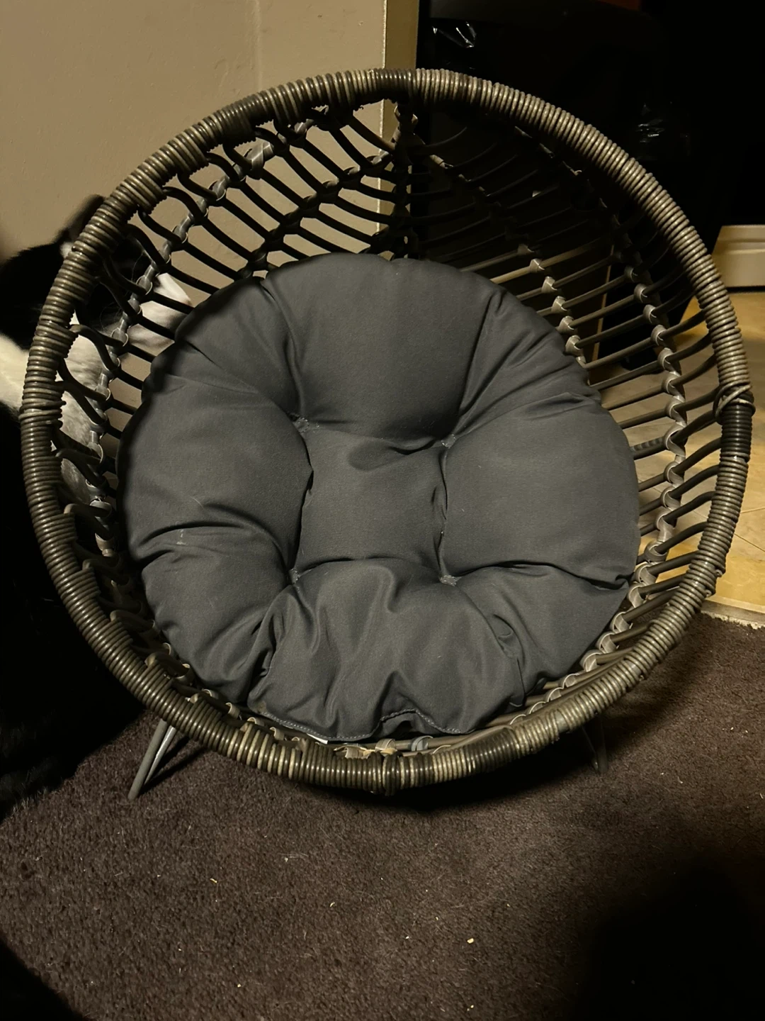 This stylish pet bed features a woven rattan-style exterior and includes a comfortable, plush cushion. It's supported by metal legs. Perfect for small dogs or cats!