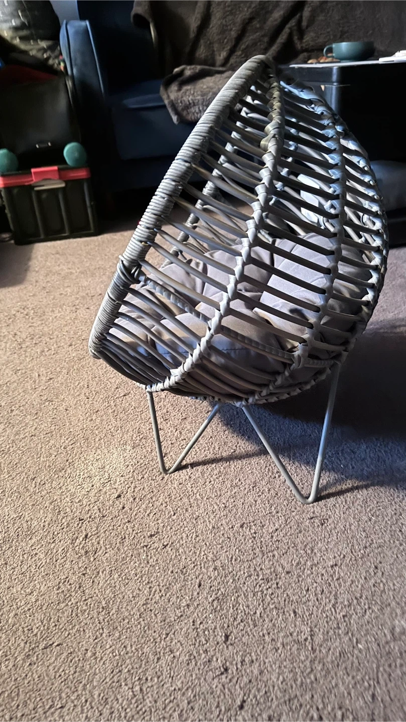 This stylish pet bed features a woven rattan-style exterior and includes a comfortable, plush cushion. It's supported by metal legs. Perfect for small dogs or cats!